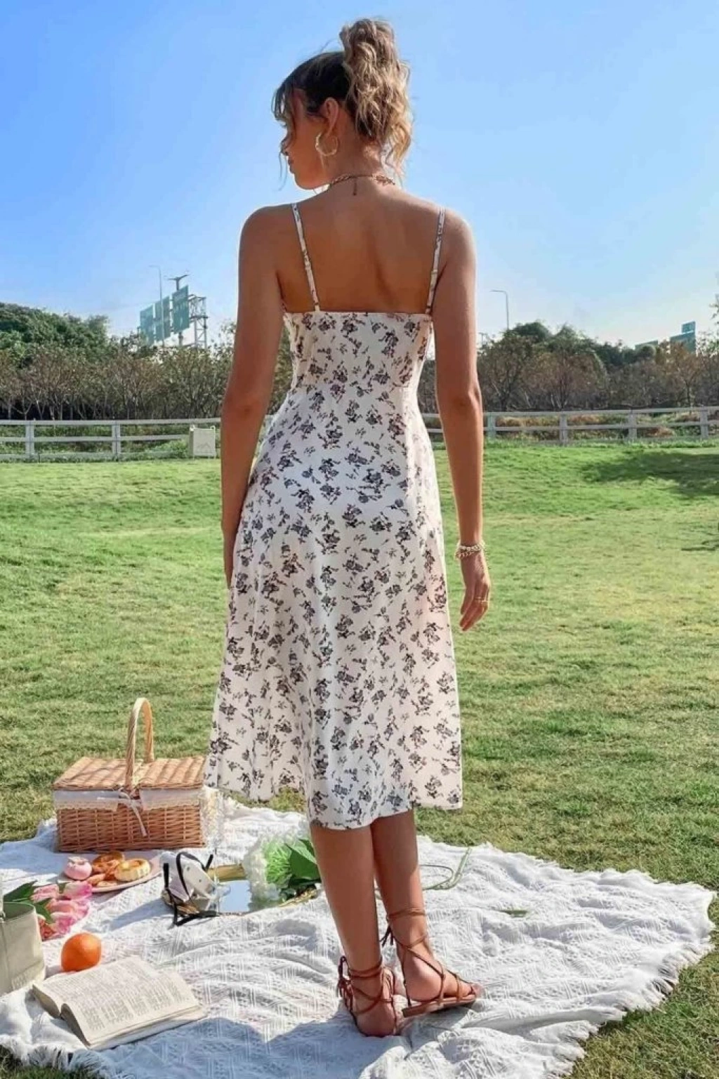 Kadın Ip Askılı Yakadan Bağcıklı Desenli Süprem Elbise
