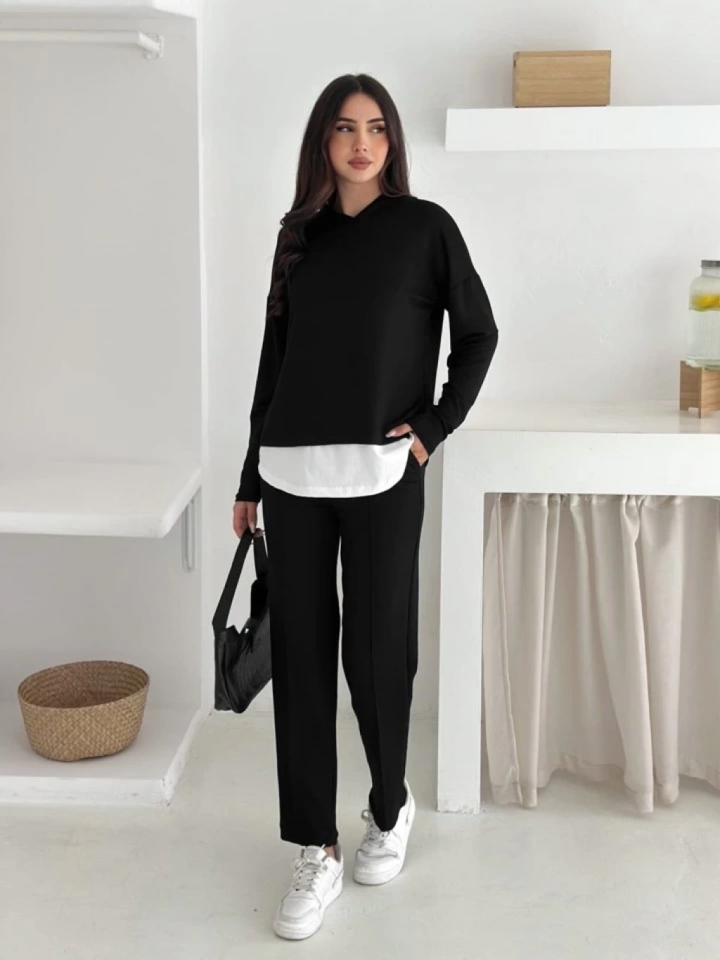 Kadın Kapşunlu Ve Atlet Detaylı Tunik Yüksek Bel Pantolunlu ıkılı Takım