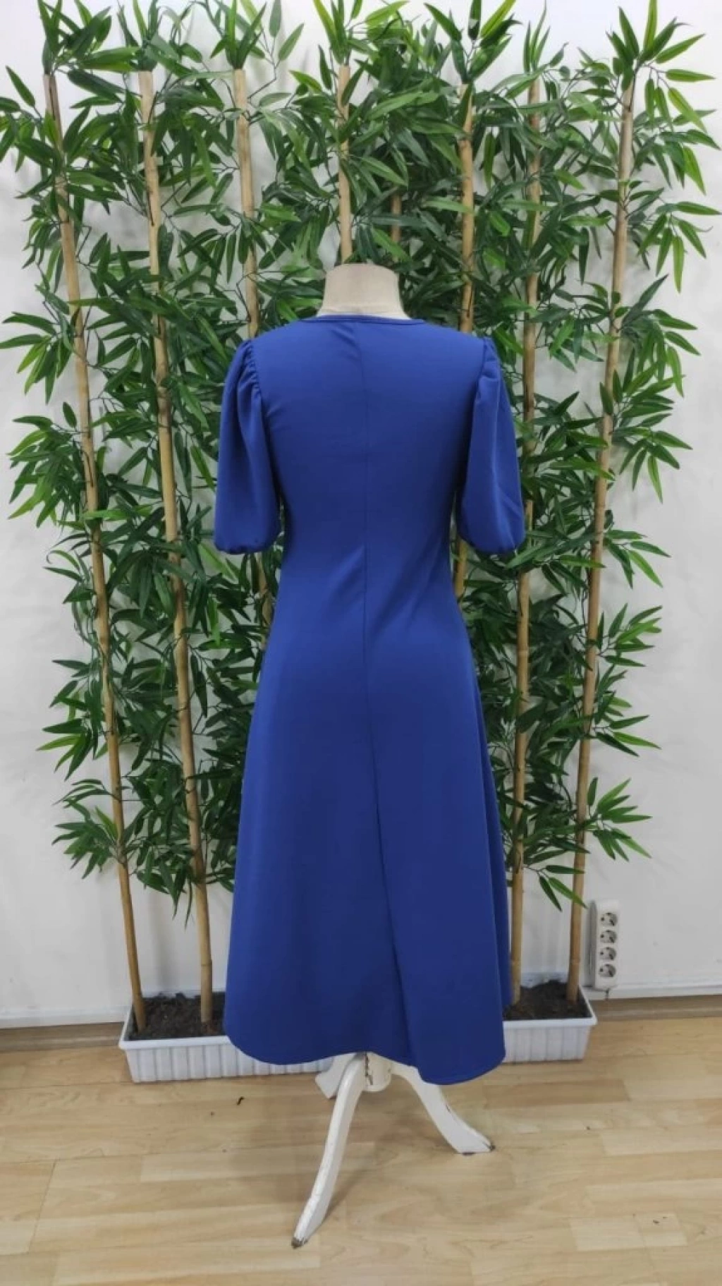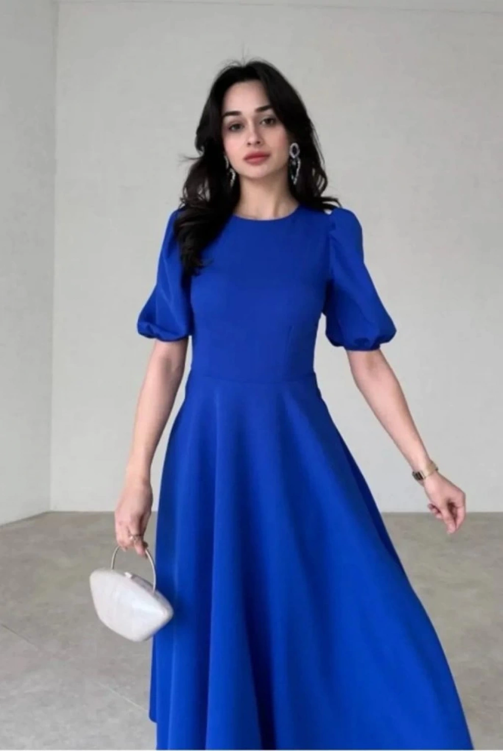 Kadın Kısa Balon Kollu Bisiklet Yaka Geniş Kesim Janjan Krep Elbise