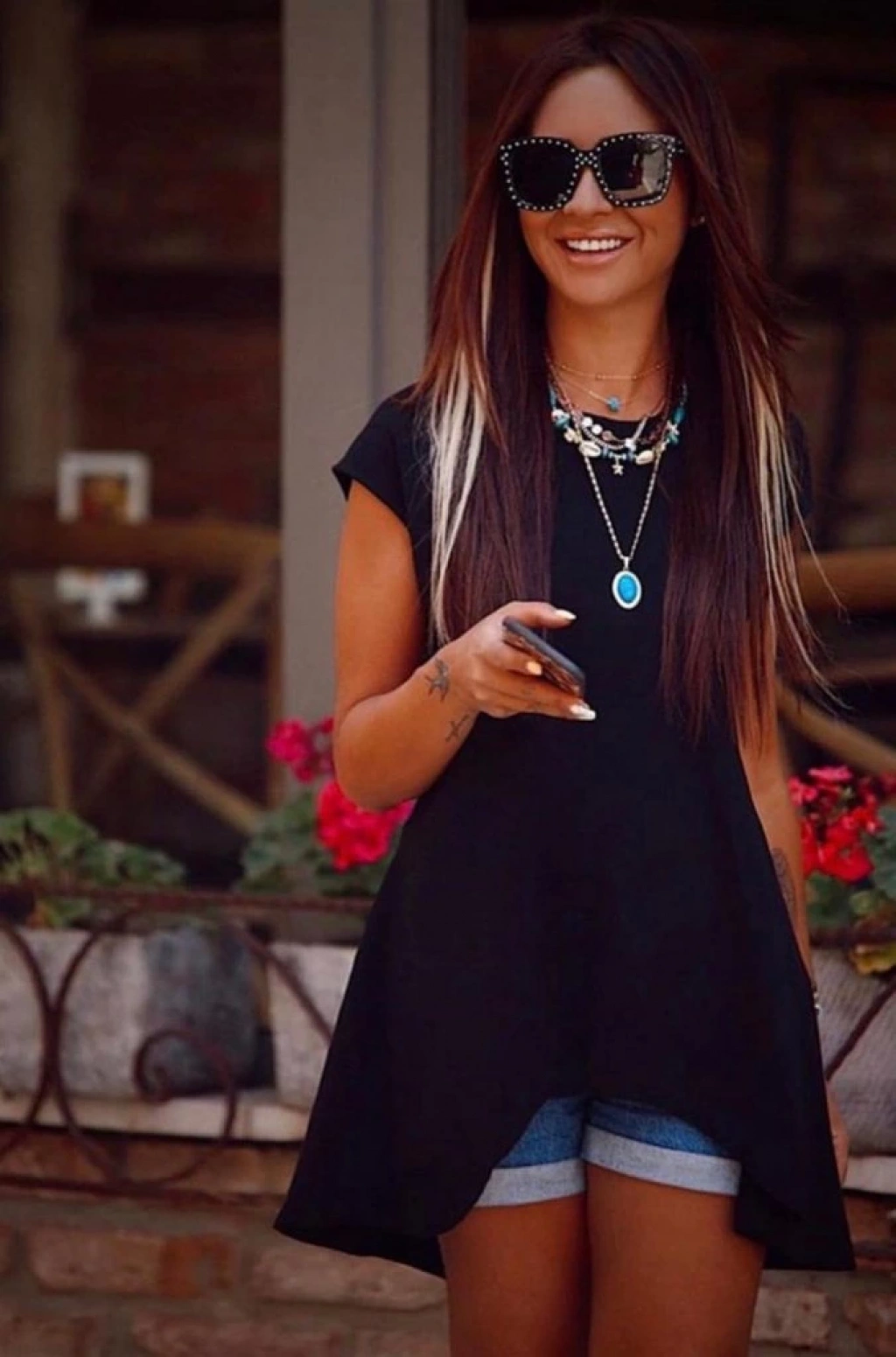Kadın Kısa Kollu Asimetrik Viskon Kumaş Bluz