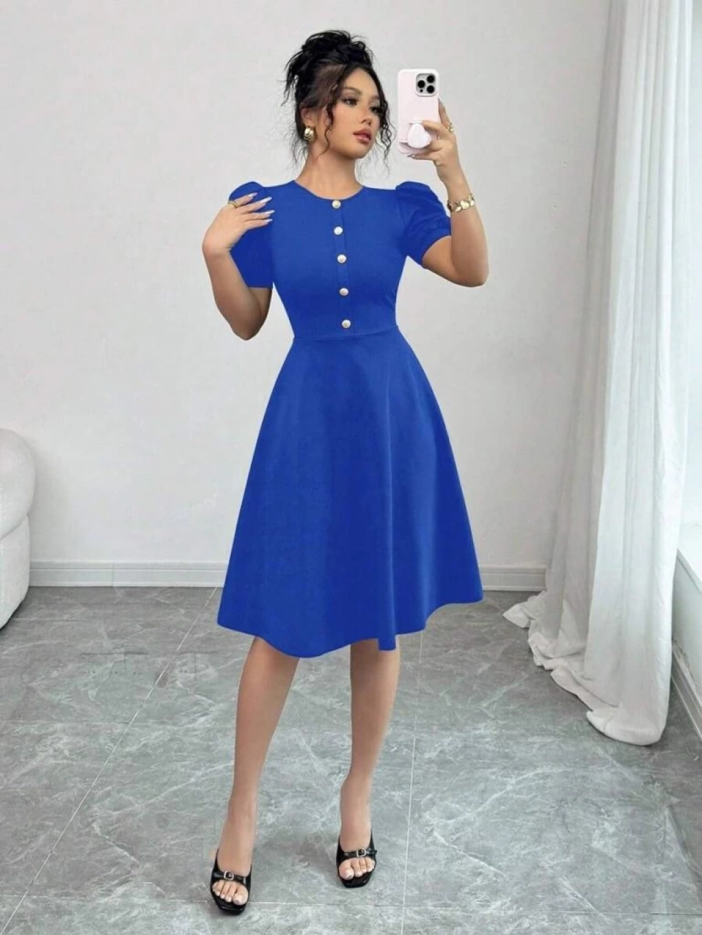 Kadın Kısa Kollu Bisiklet Yaka önden Düğmeli Ithal Krep Elbise