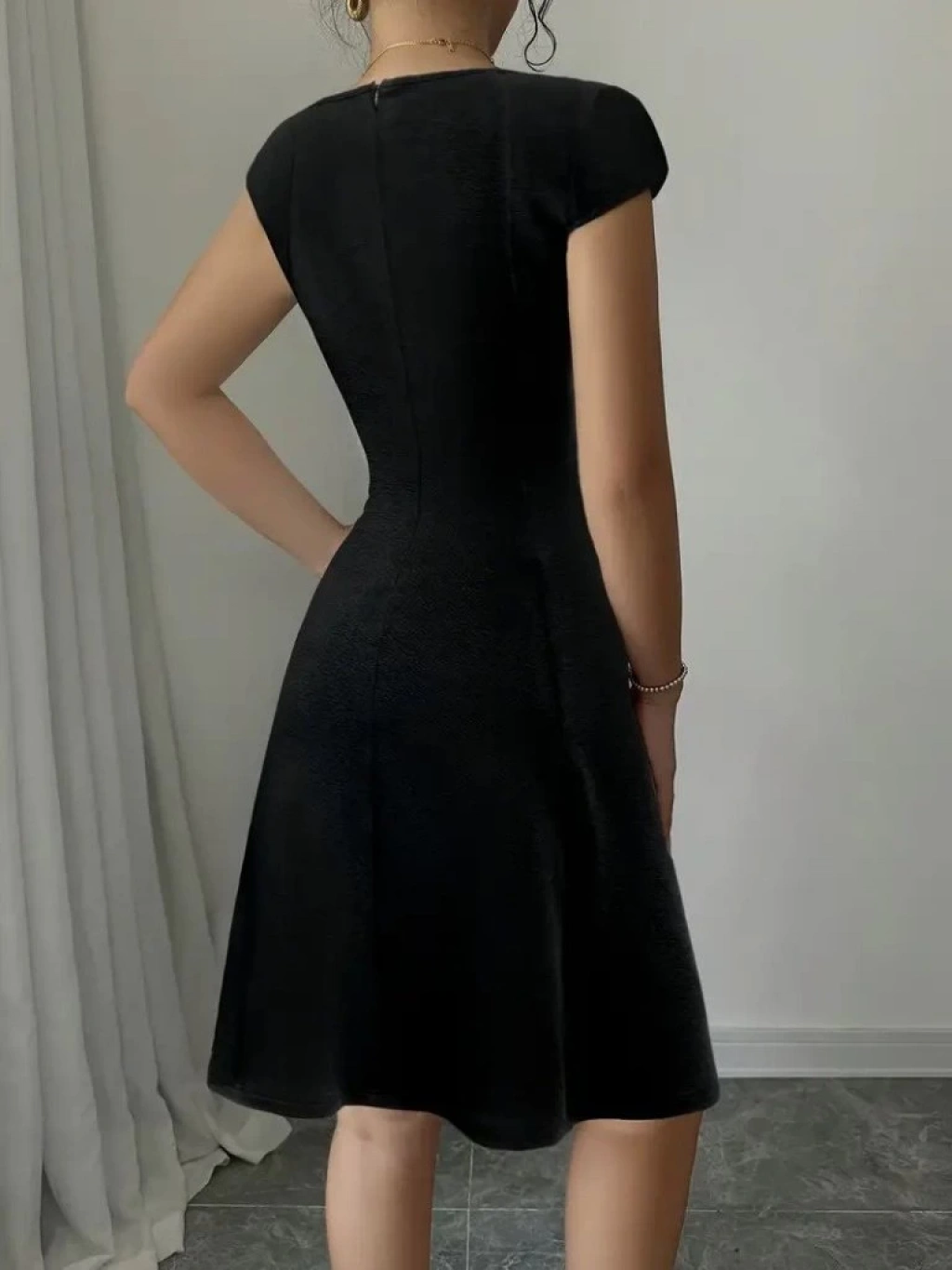 Kadın Kısa Kollu Geometrik Yakalı Janjan Krep Elbise