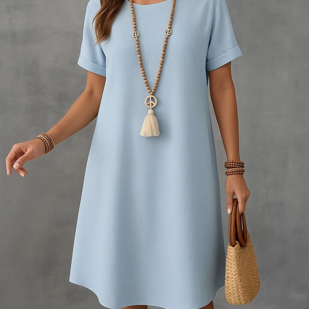 Kadın Kısa Kollu Kayık Yaka Bürümcük Elbise
