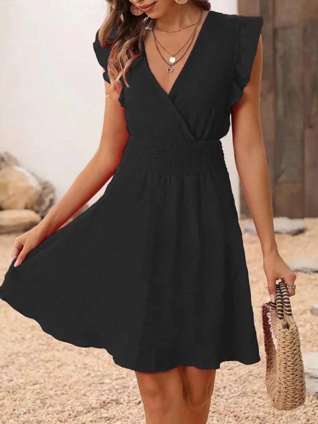 Kadın Kısa Kollu Kruvaze Yakalı Beli Lastikli Aerobin Elbise