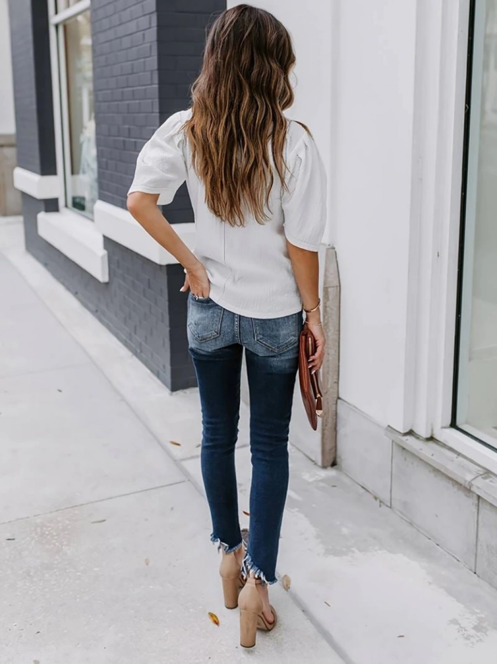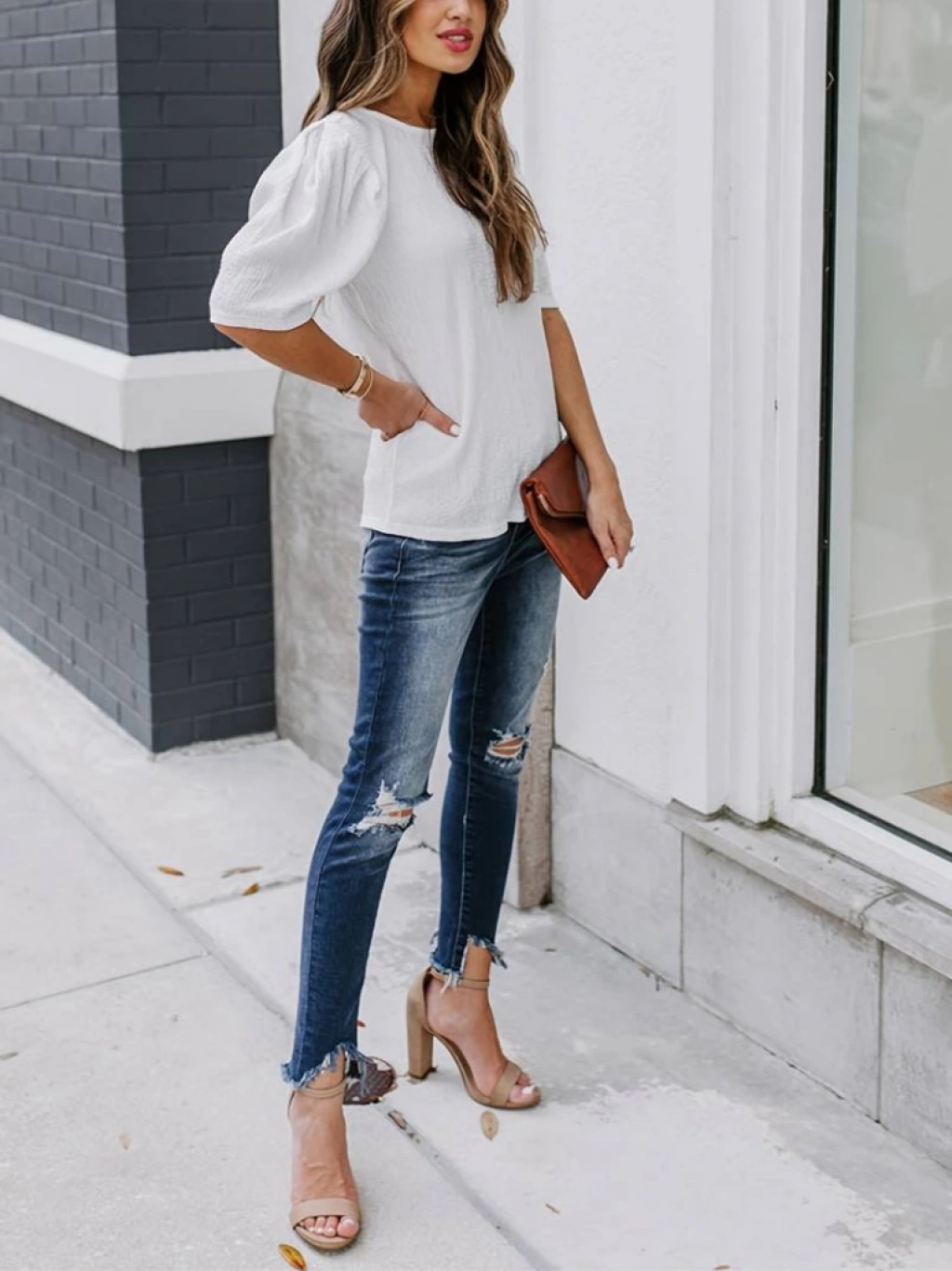 Kadın Kısa Kollu Pileli Balın Kol Bürümcük Bluz