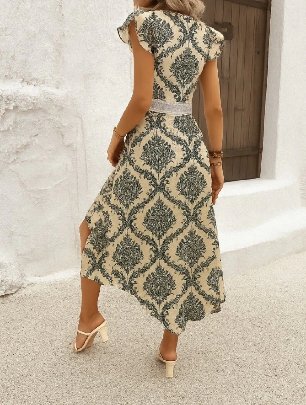 Kadın Kısa Kollu V Yakalı çiçek Desenli önü Kısa Arkası Uzun Pegasus Elbise