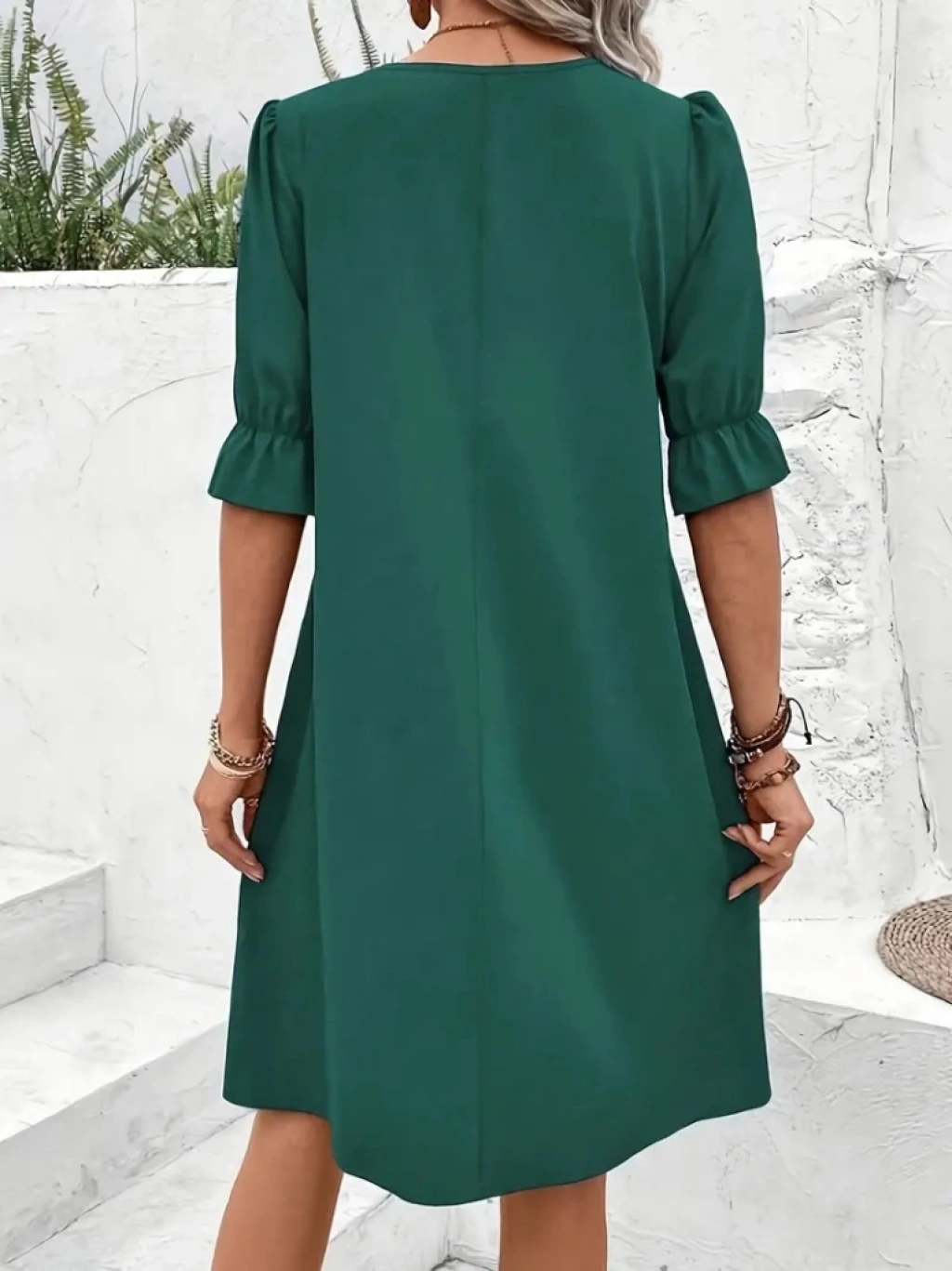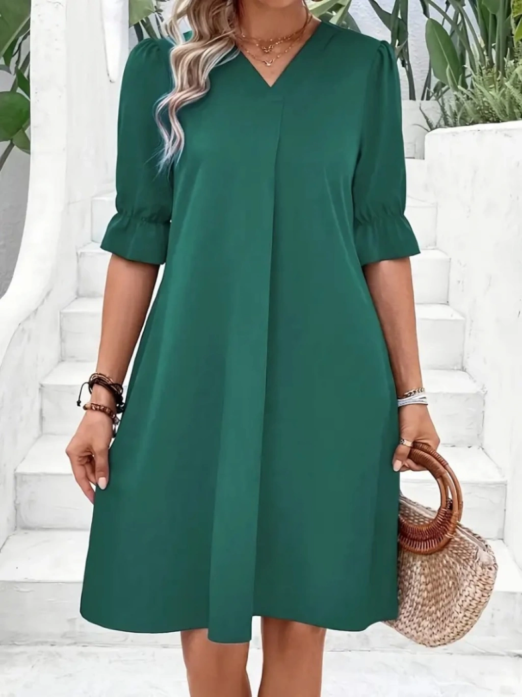 Kadın Kısa Kollu V Yakalı Salaş Janjan Krep Elbise