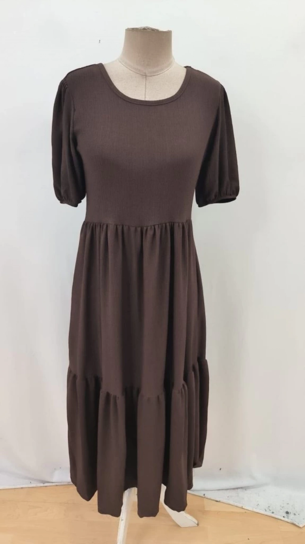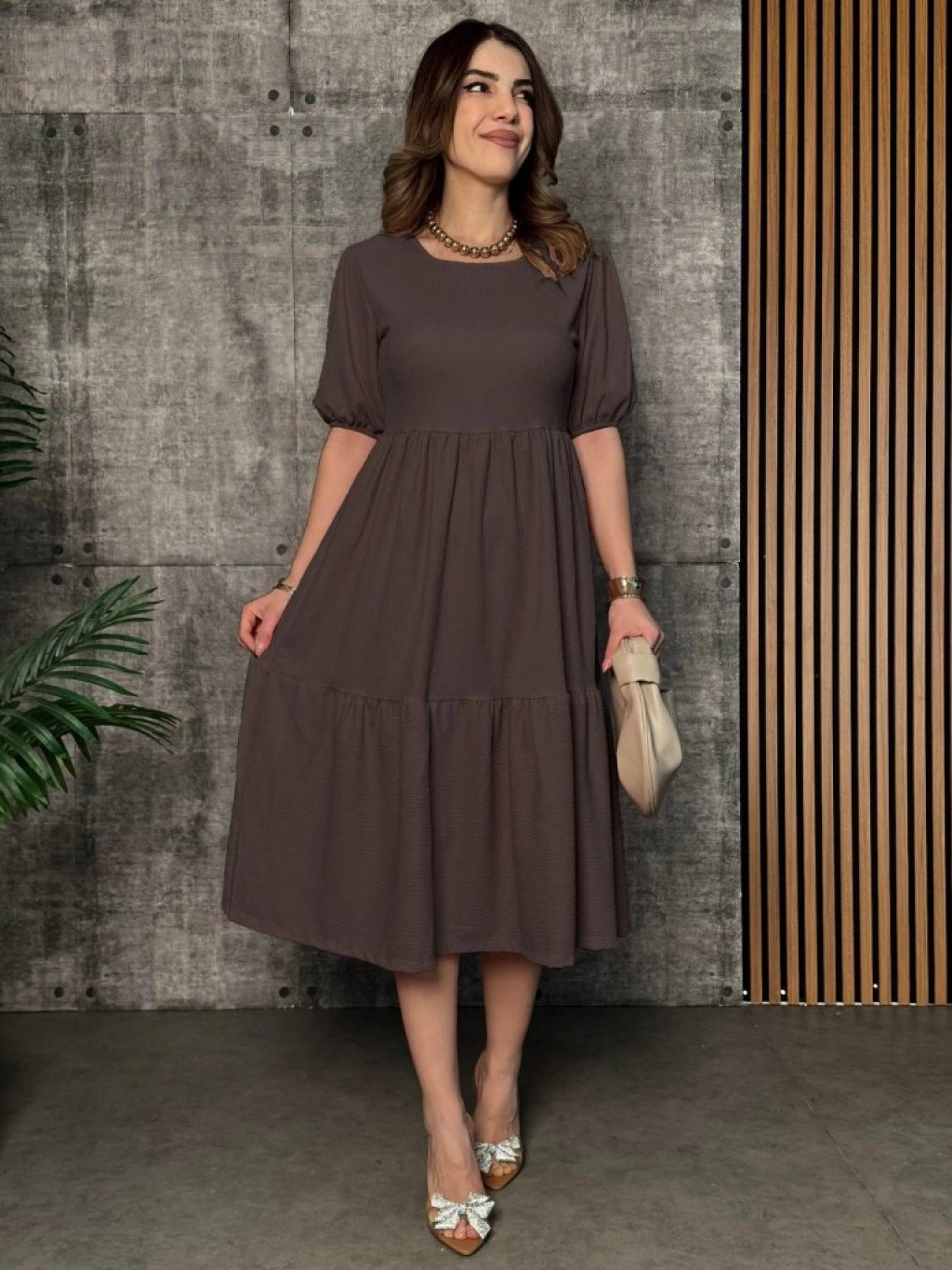Kadın Kısa Kollu Yakası Açık Katlı Bürümcük Balon Elbise