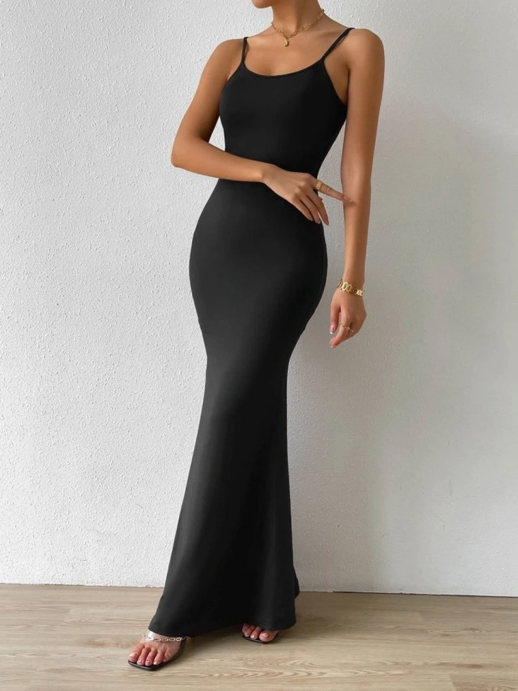 Kadın Kolsuz Askılı Bodycon Uzun Viskon Elbise