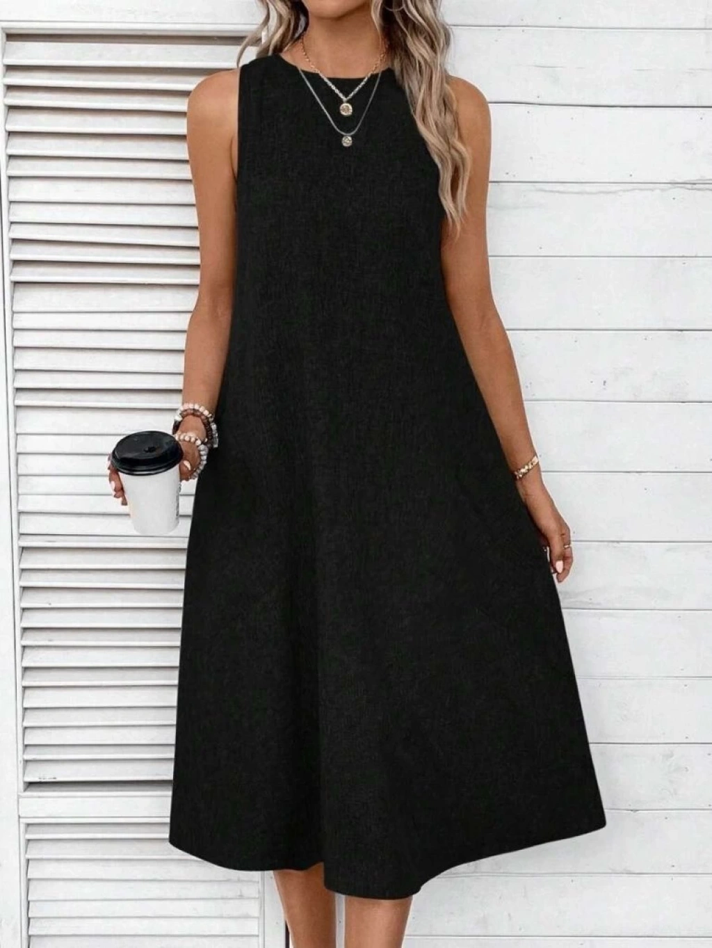 Kadın Kolsuz Bisiklet Yaka Cepli Midi Keten Elbise
