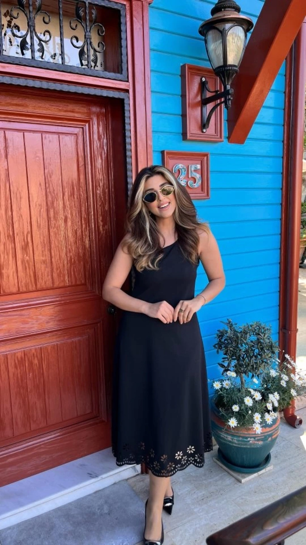 Kadın Kolsuz Etek Ucu Lazer Kesim çiçek Desenli Midi Boy Janjan Krep Elbise
