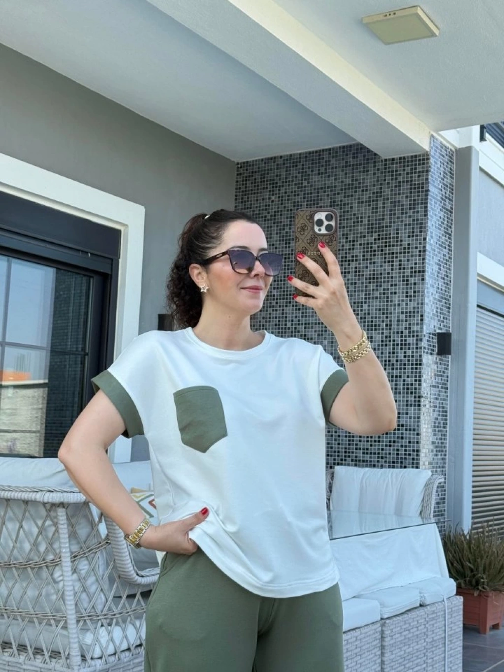 Kadın Kristal Kumaş Garnili Cep Detaylı Ikili Takım