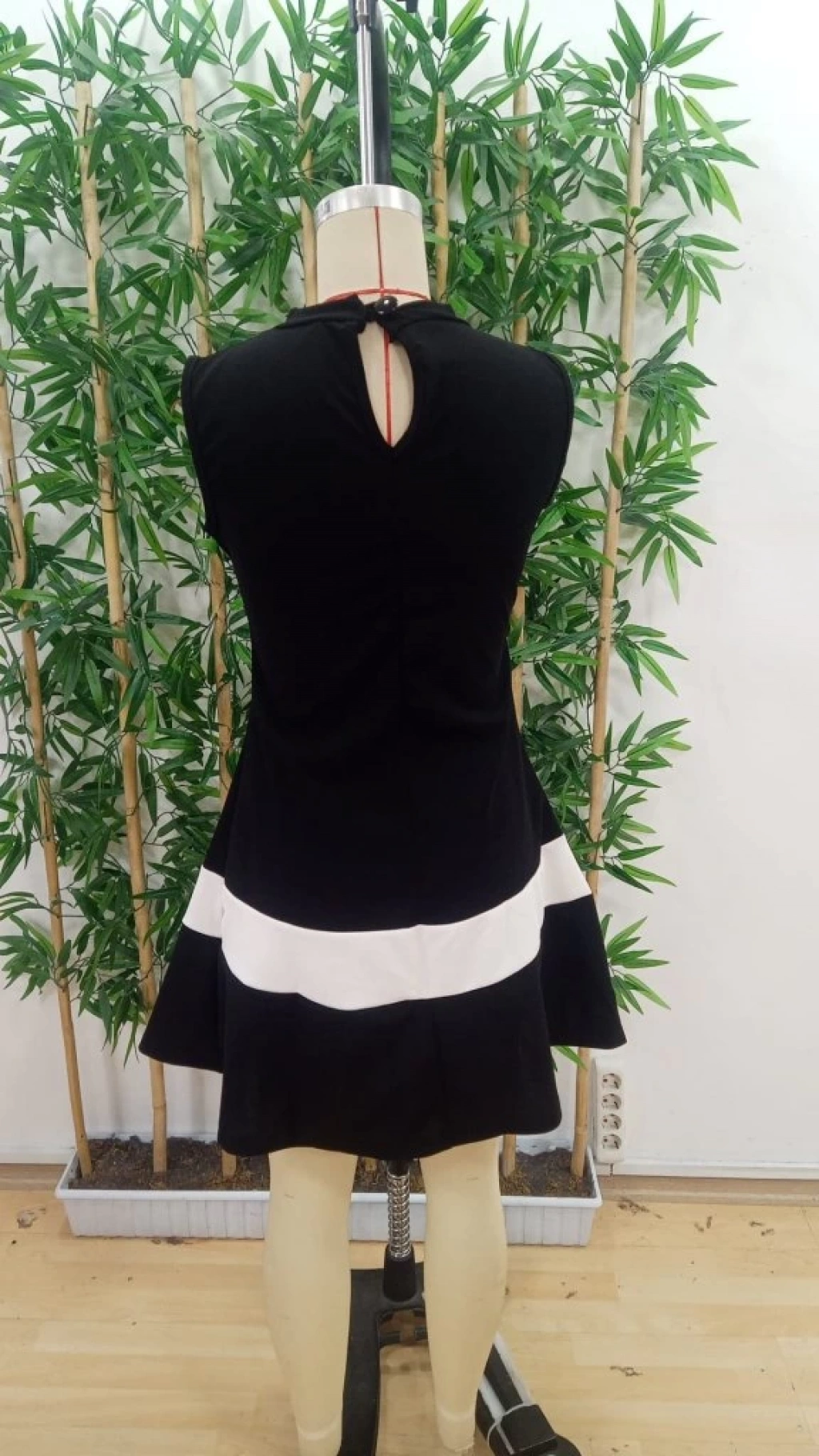 Kadın Sıfır Kol Yarı Balıkçı Yaka şerit Detaylı Ithal Krep Elbise