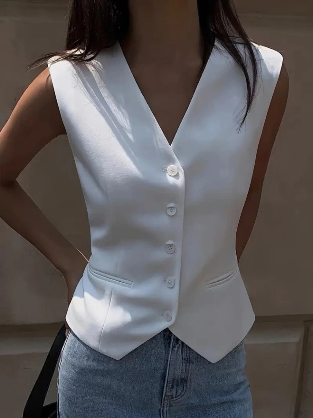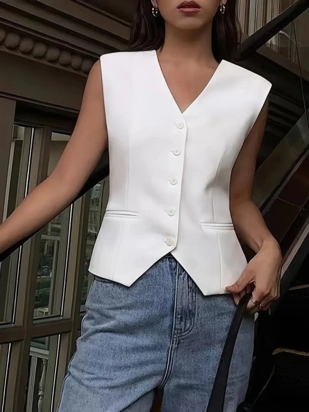 Kadın Sıfır Kollu önden Düğmeli Atlas Yelek