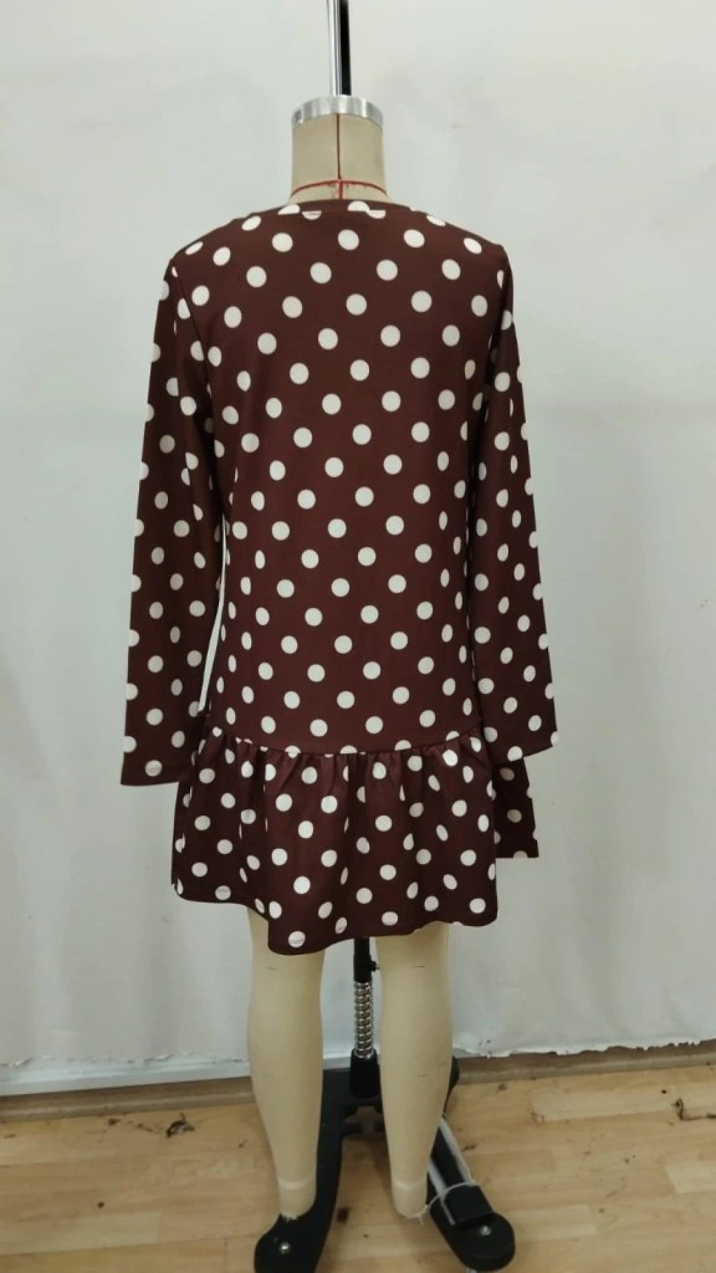 Kadın Uzun Kollu Bisiklet Yaka Fırfırlı Puantiyeli Kısa Modal Elbise