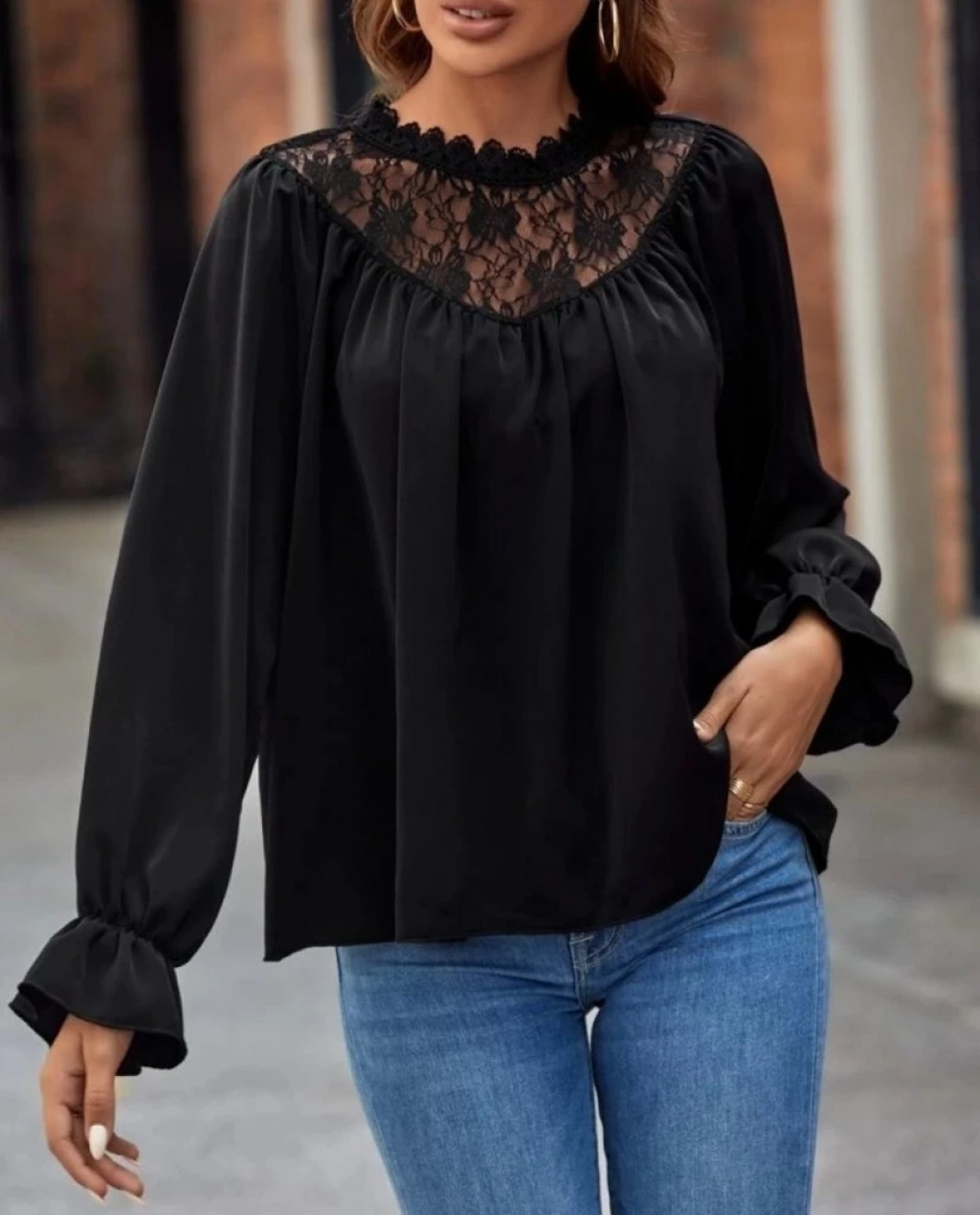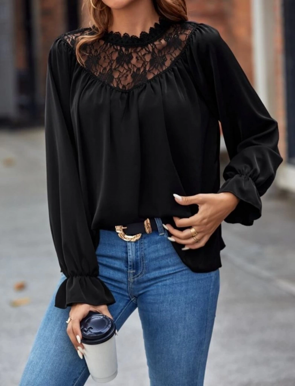 Kadın Uzun Kollu Dantelli Salaş Sandy Bluz