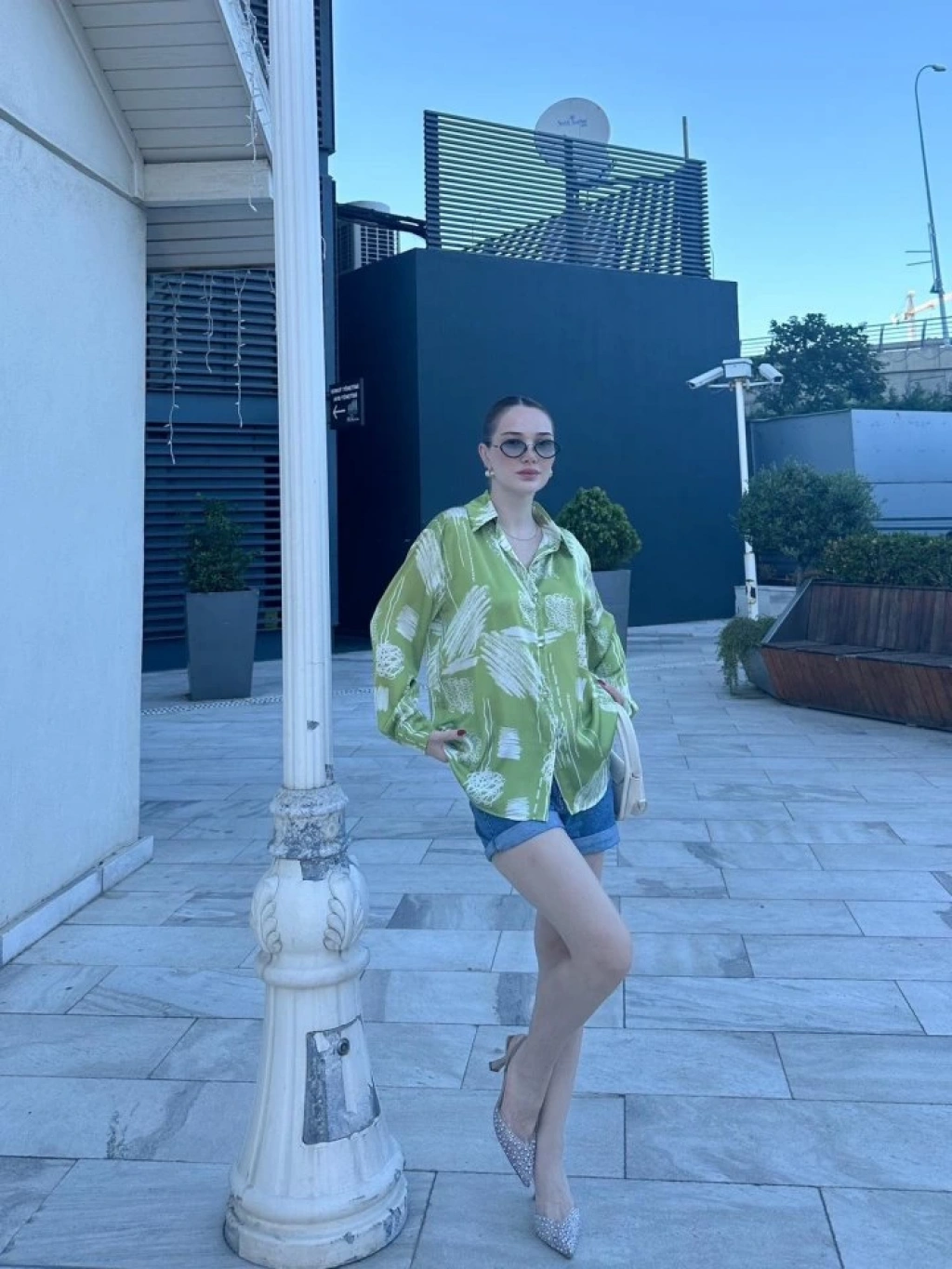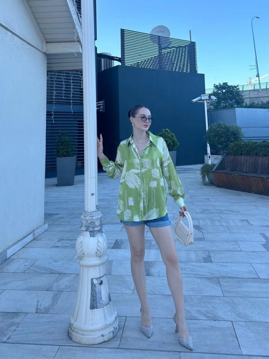 Kadın Uzun Kollu Dijital Baskılı Salaş Saten Gömlek