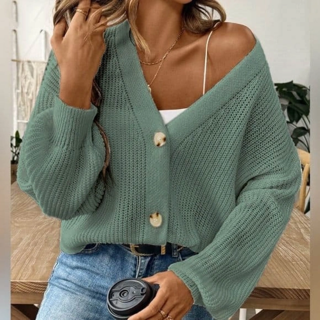 Kadın Uzun Kollu Düğme Detay Triko Bluz