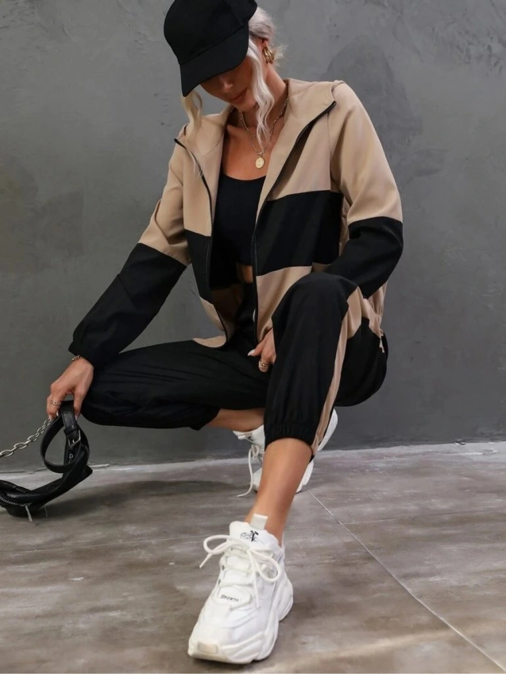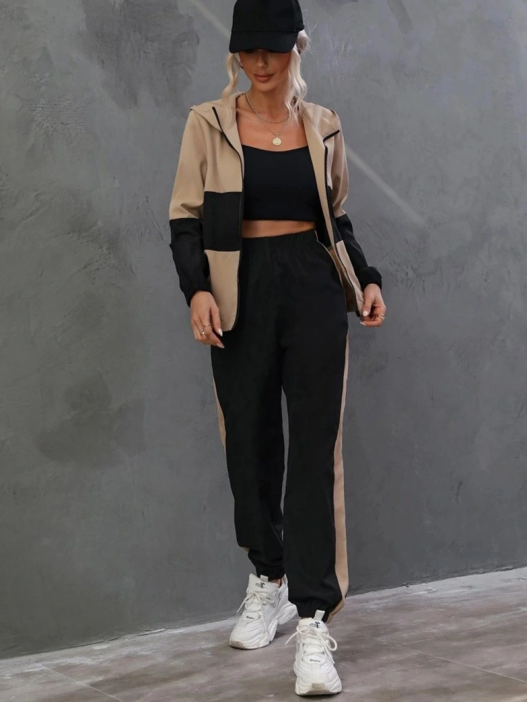 Kadın Uzun Kollu Kapşonlu önden Fermuarlı Viskon Iki Iplik Bluz Ve Pantolon Ikili Takım