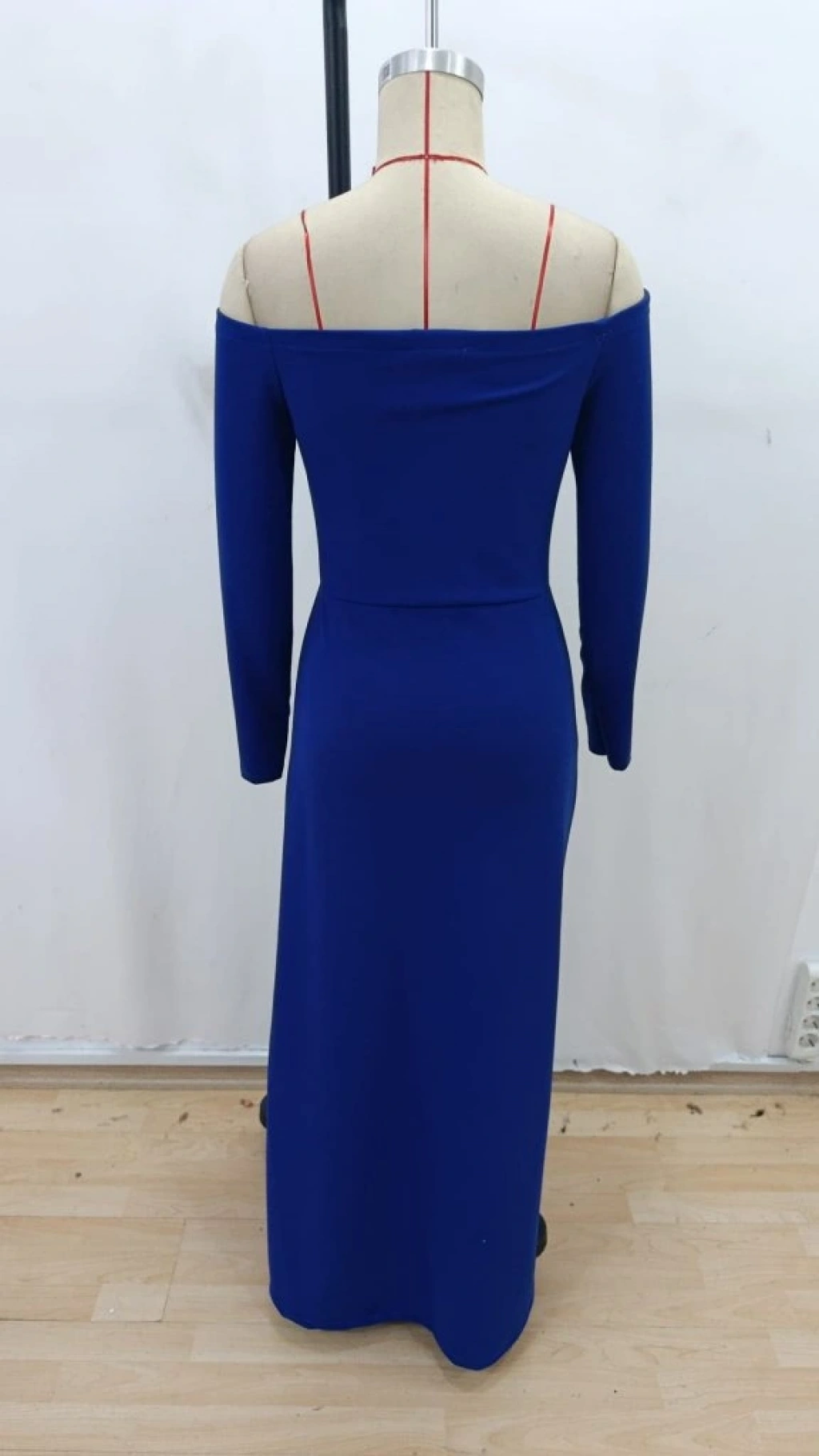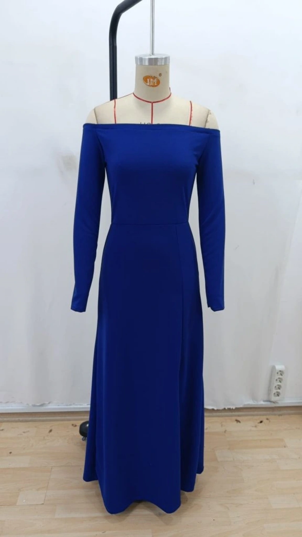 Kadın Uzun Kollu Madonna Yakalı Yırtmaç Detaylı Uzun Ithal Krep Elbise