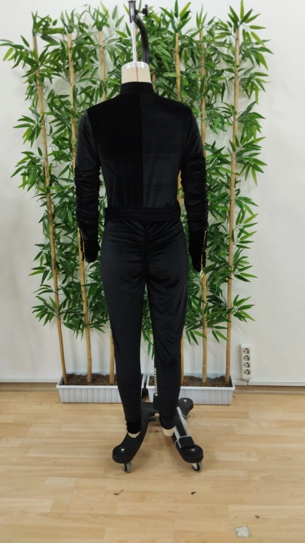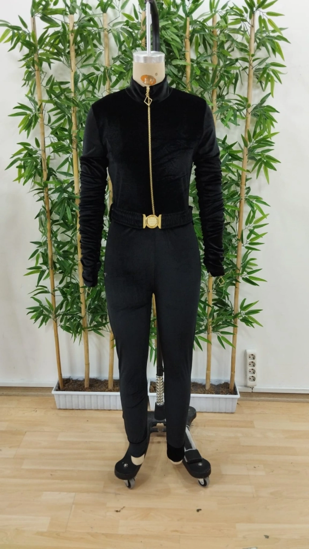 Kadın Uzun Kollu önden Fermuar Detaylı Kemerli Kadife Tulum