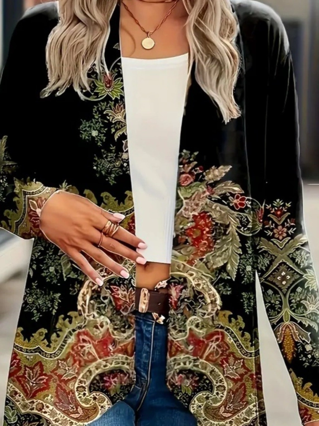 Kadın Uzun Kollu önü Açık Desenli şardonlu Dalgıç Ceket