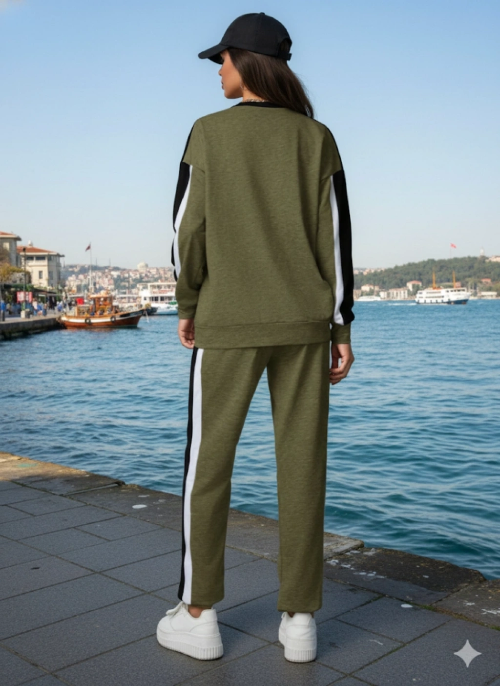 Kadın Uzun Kollu şerit Detay Eşofman Takım