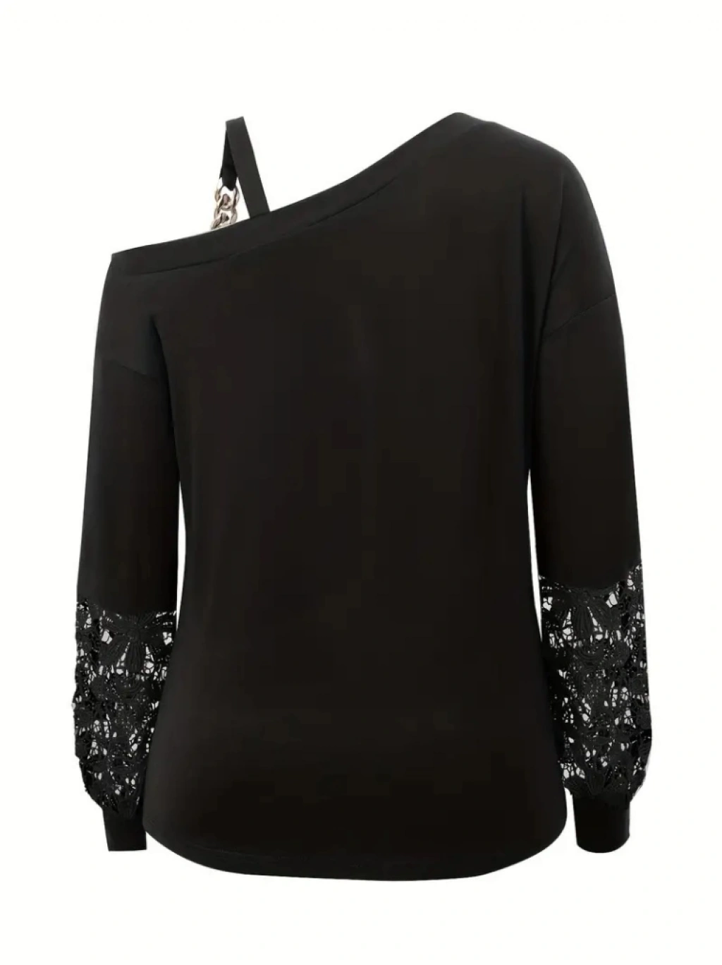Kadın Uzun Kollu Tek Omuzu Açık Askılı Toka Ve Dantel Detay Viskon Iki Iplik Bluz
