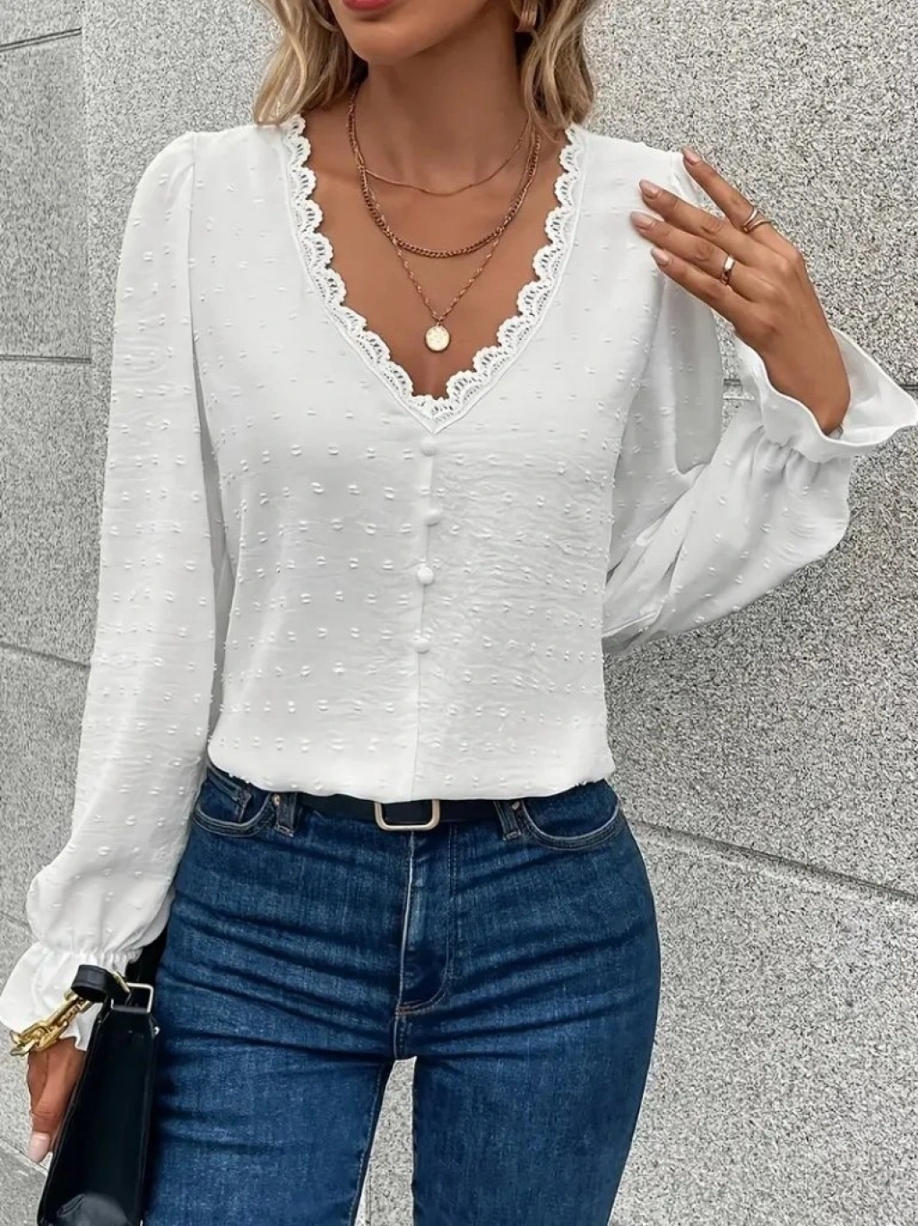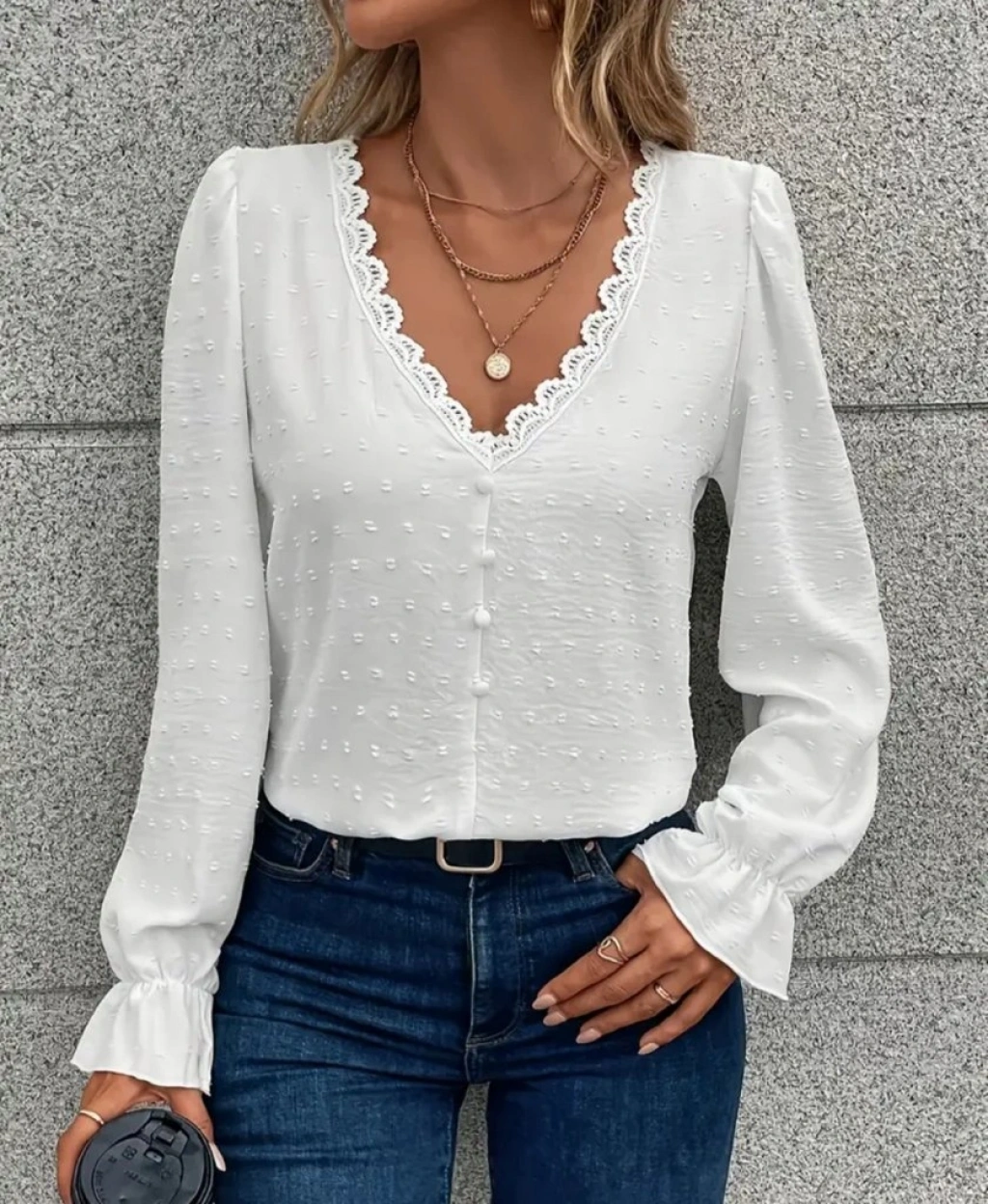 Kadın Uzun Kollu V Yakalı önden Düğmeli Bluz