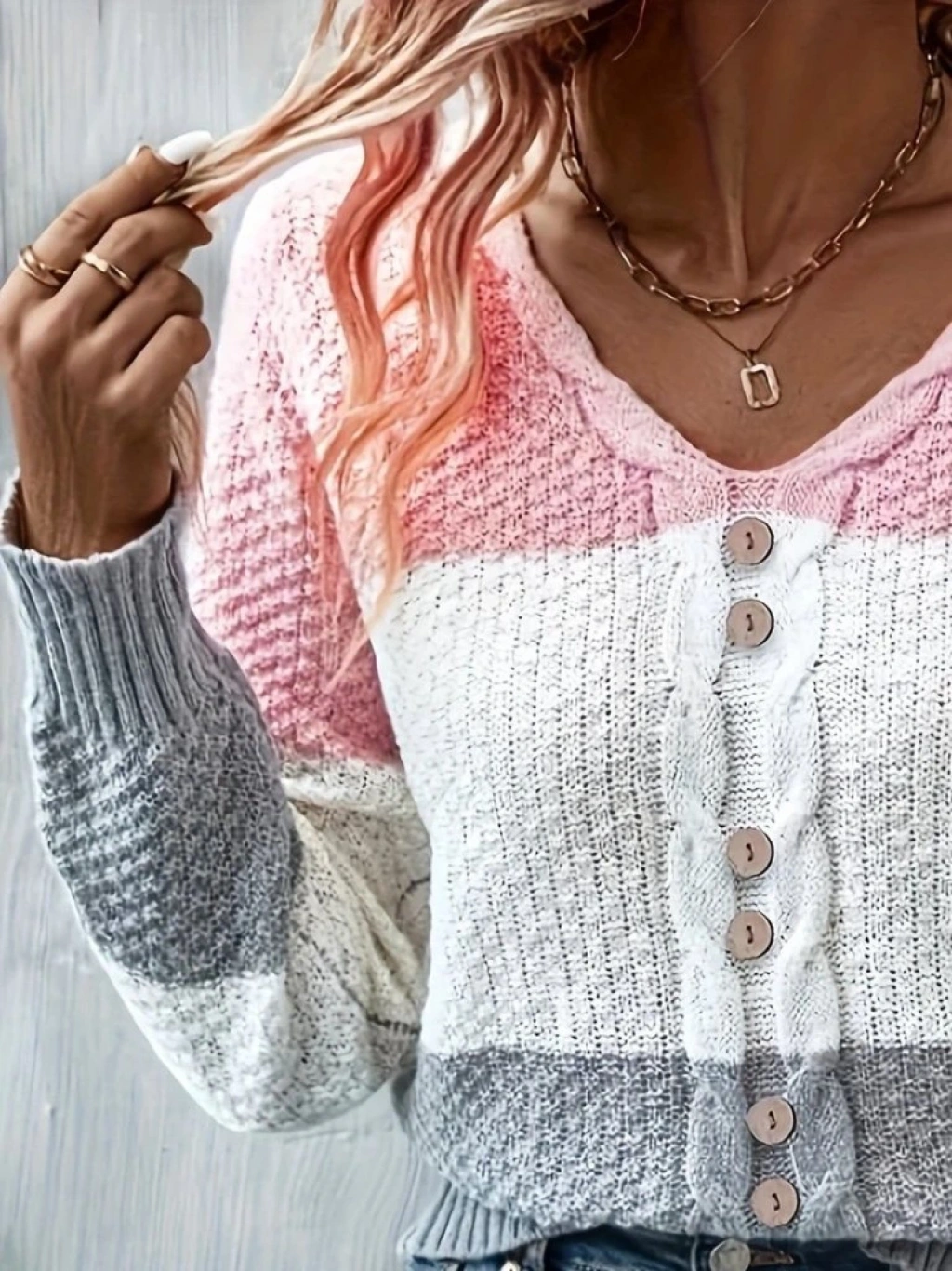 Kadın Uzun Kollu V Yakalı önden Düğmeli çok Renkli Bluz