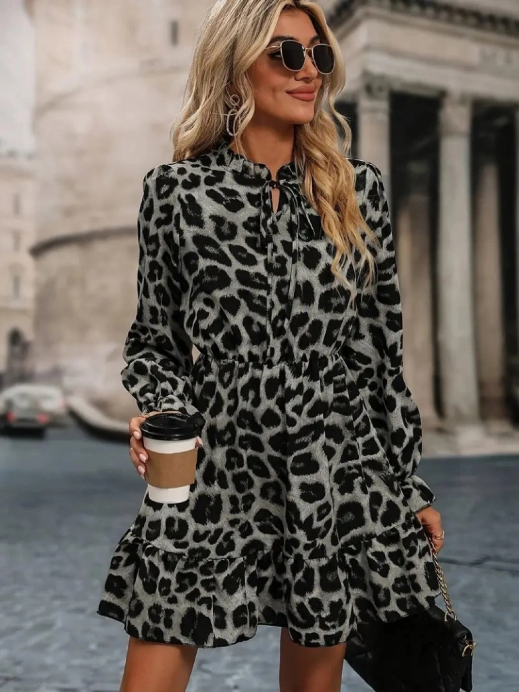 Kadın Uzun Kollu Yakadan Bağlamalı Beli Lastikli şardonlu Dalgıç Elbise