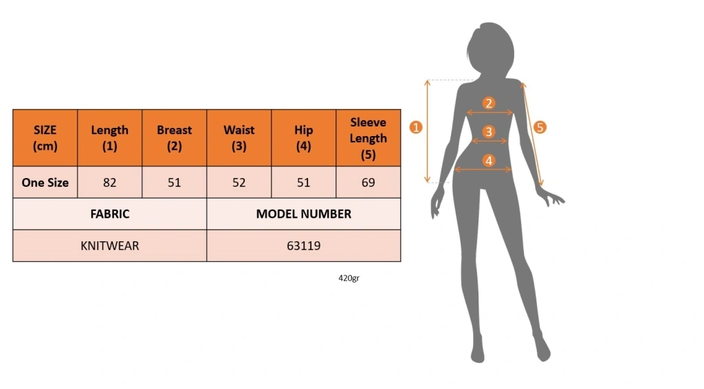 Modelin Ölçüleri: Boy:165, Kg:55, Göğüs:90, Bel:72, Kalça: 100