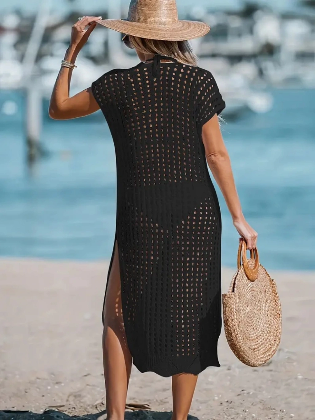 Kadın V Yaka Yanı Derin Yırtmaçlı Mi Boy Triko Elbise