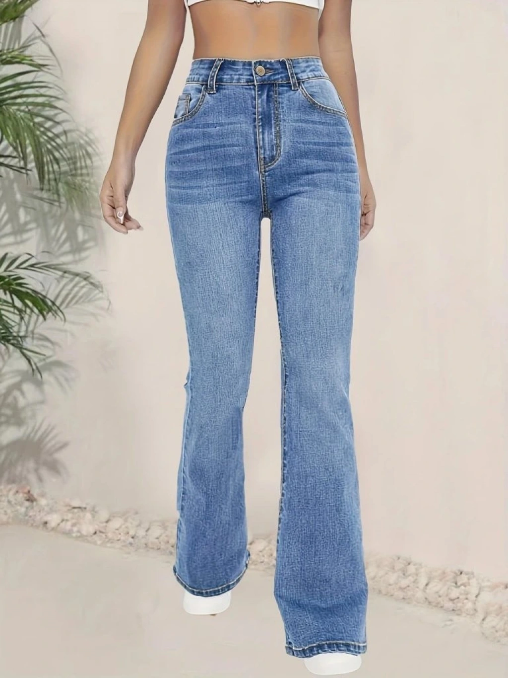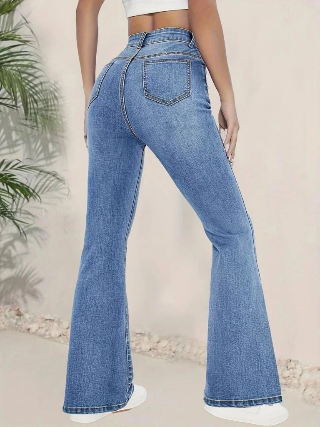 Kadın Yüksek Bel İspanyol Paça Kot Pantolon