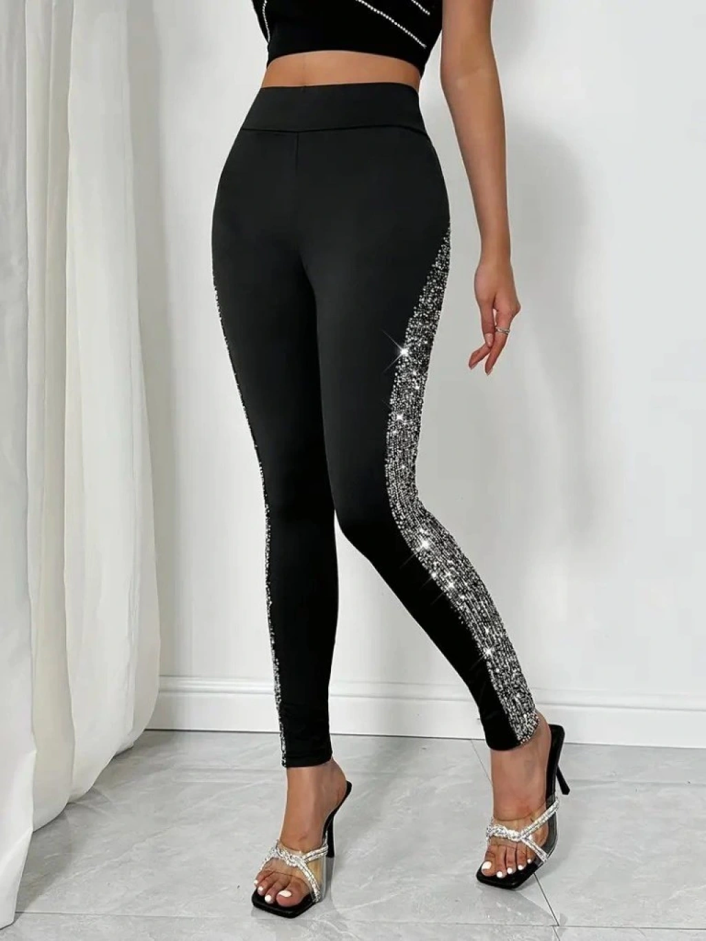 Kadın Yüksek Bel Yarı şerit Pul Payetli Dalgıç Tayt