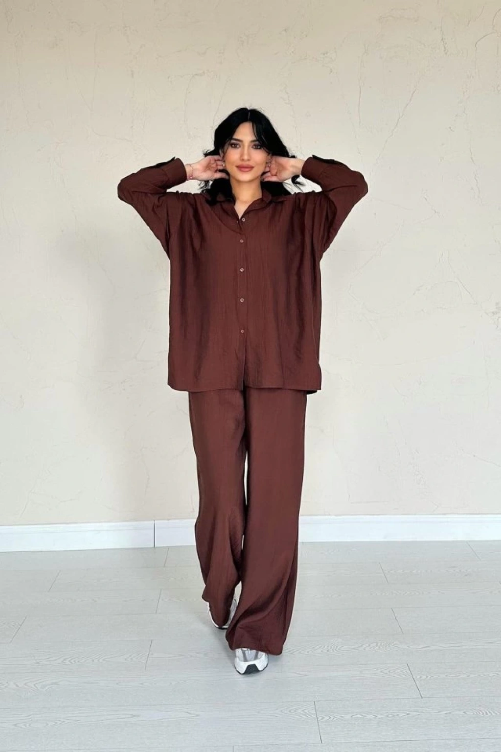 Kahverengi Alice Gömlek Ve Bol Kesim Pantolon Takım