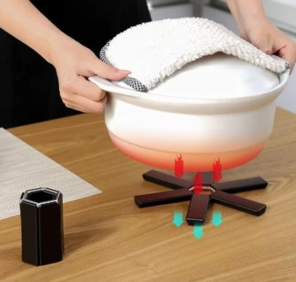 Mutfakta sıcak eşyaları masa veya tezgâhınıza zarar vermeden yerleştirmenize yardımcı olur.