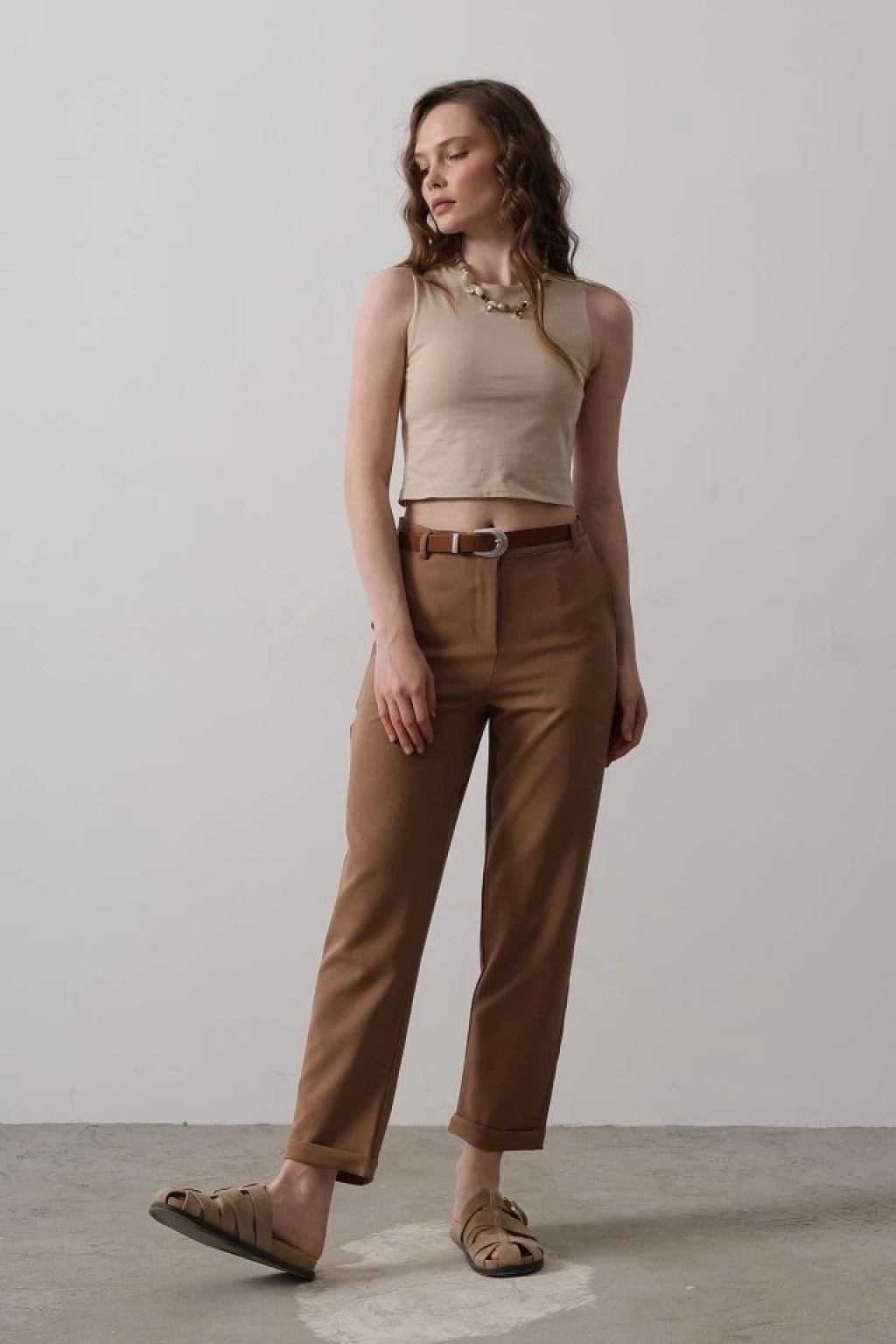 Kemerli Havuç Pantolon - Taba