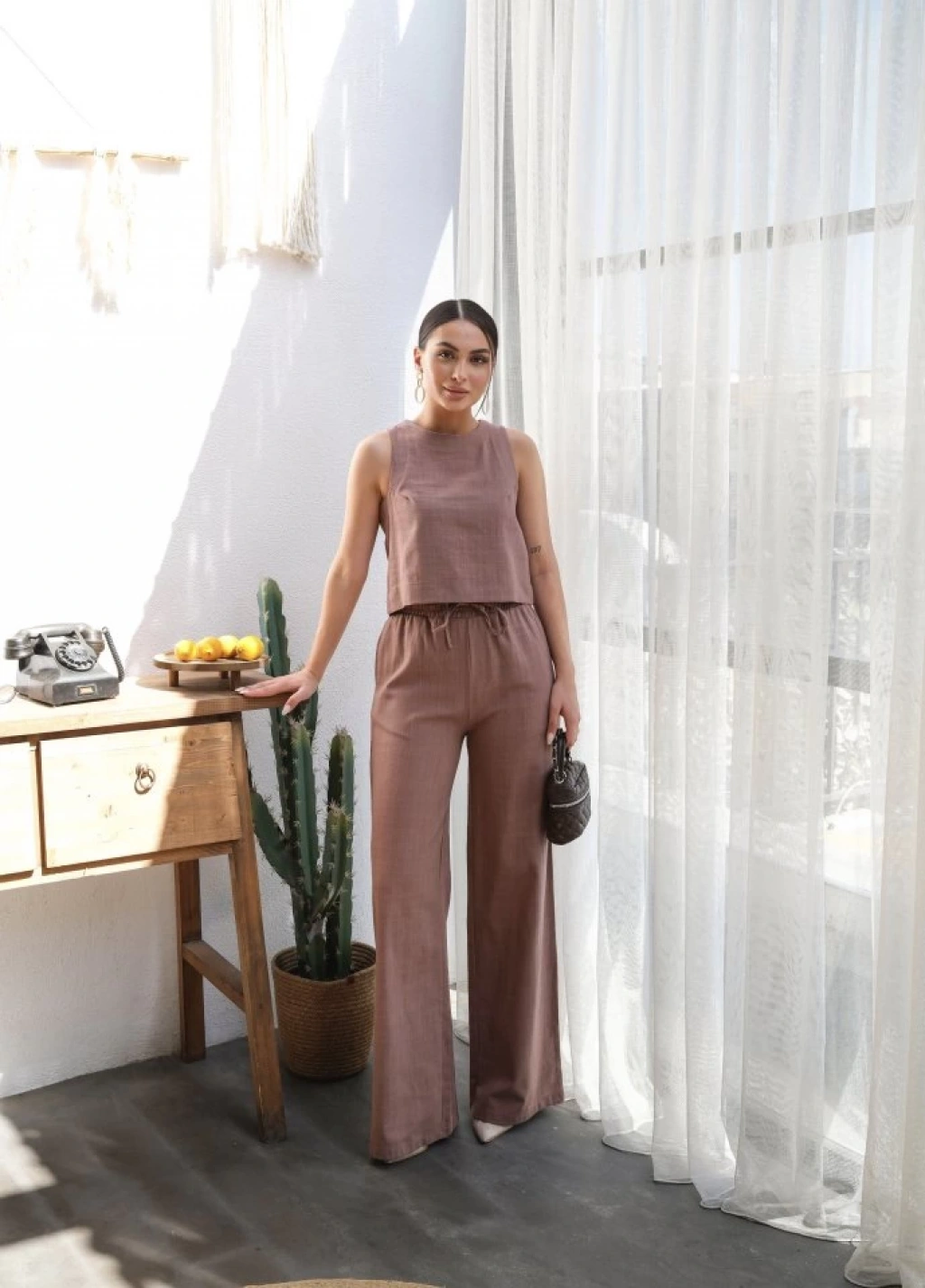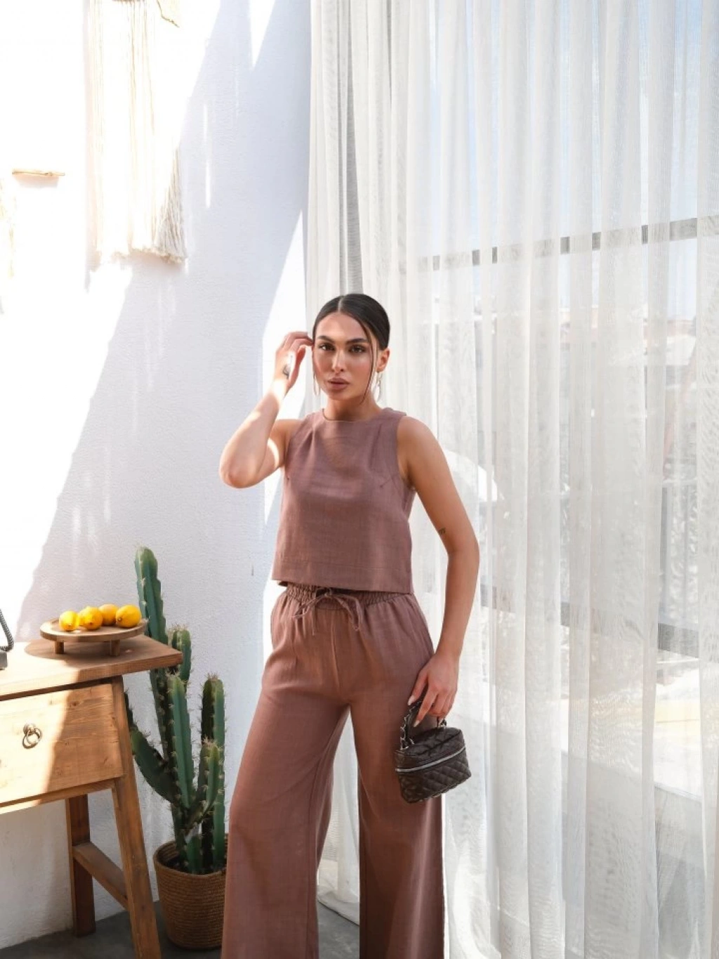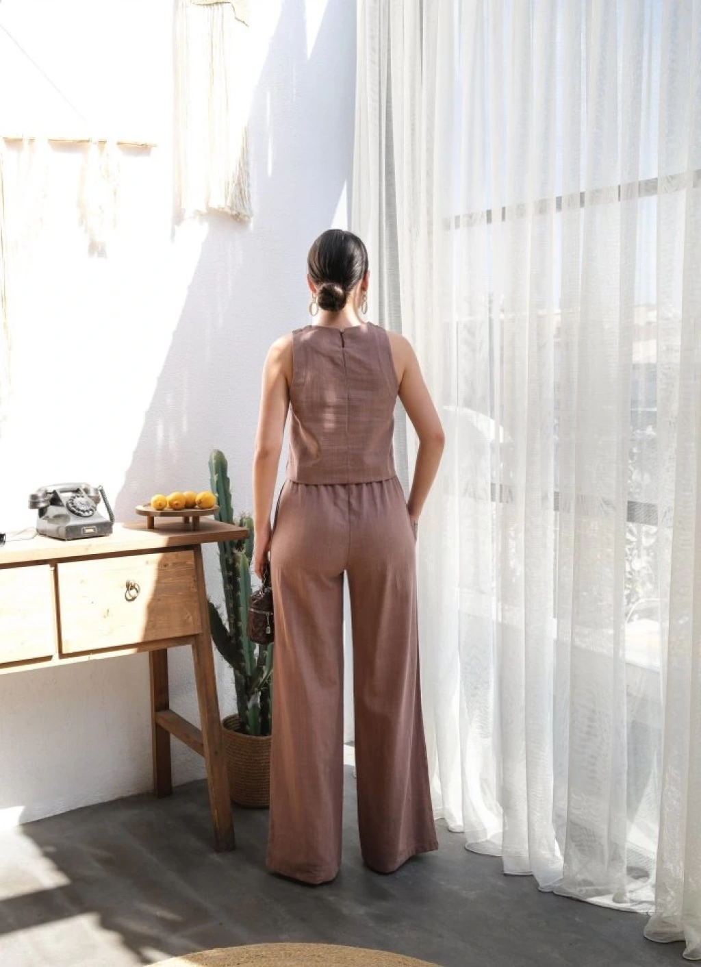 Keten Bluz Ve Pantolon İki̇li̇ Takim
