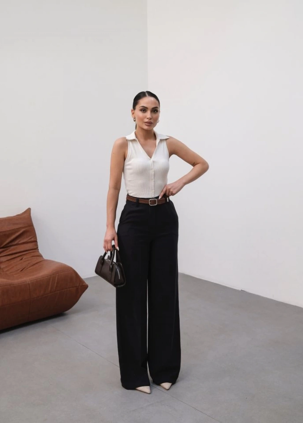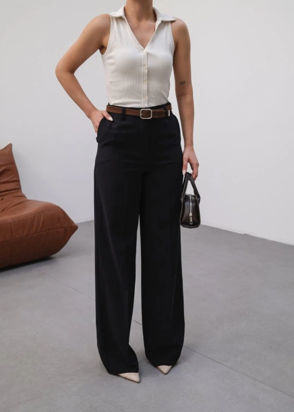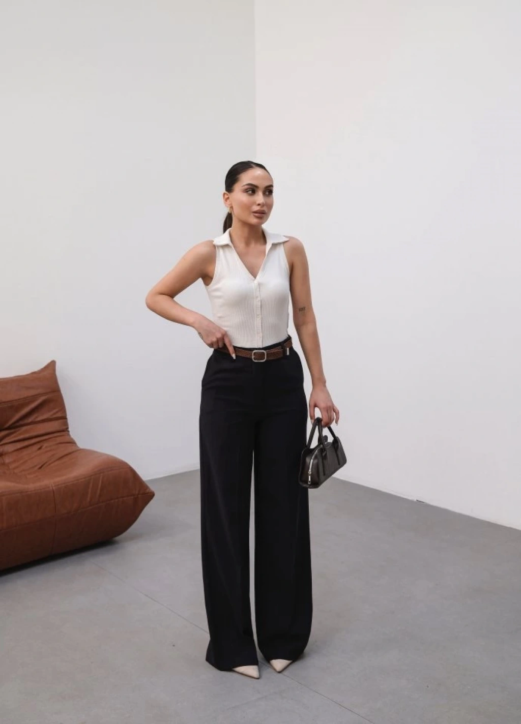 Keten Kemerli̇ Ve Dökümlü Palazzo Pantolon (Kemer Dahi̇l)
