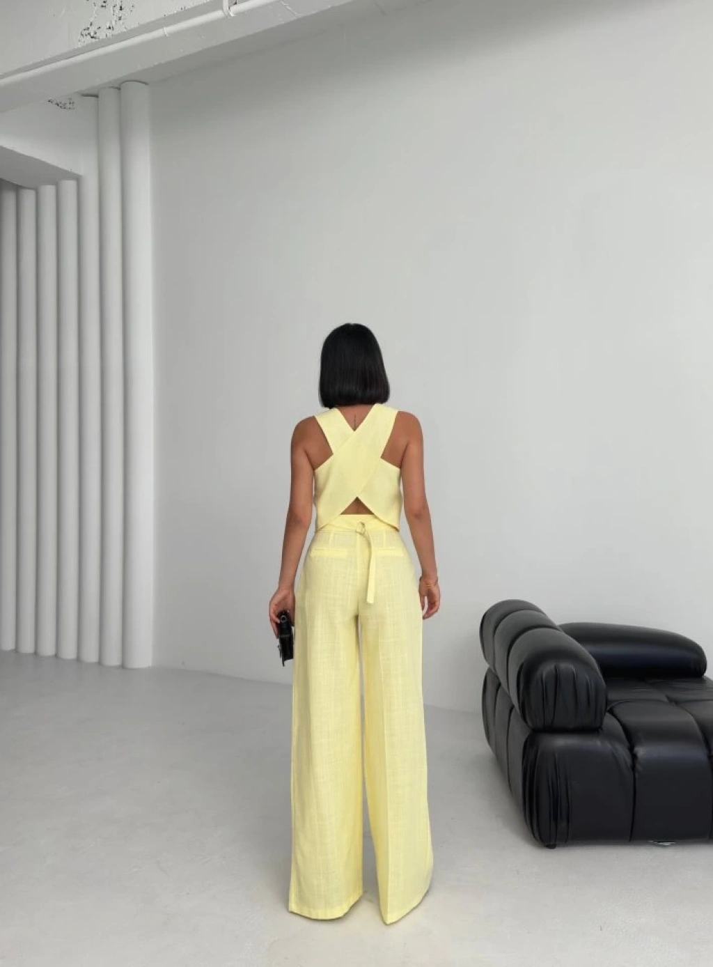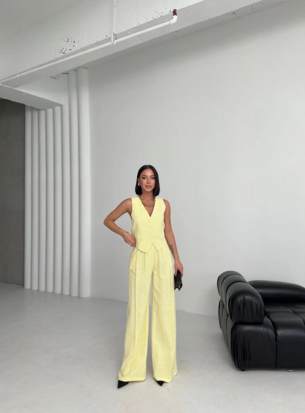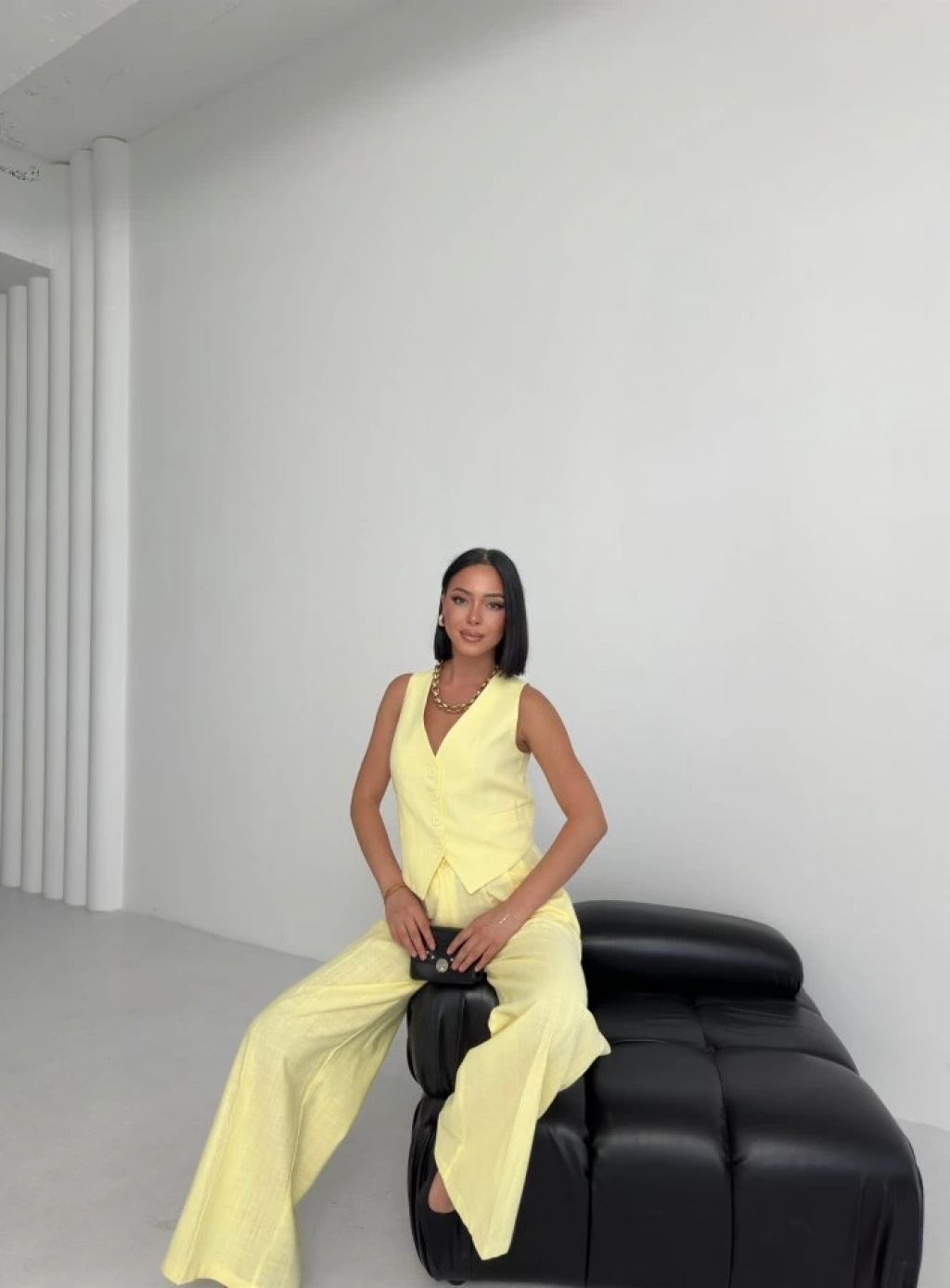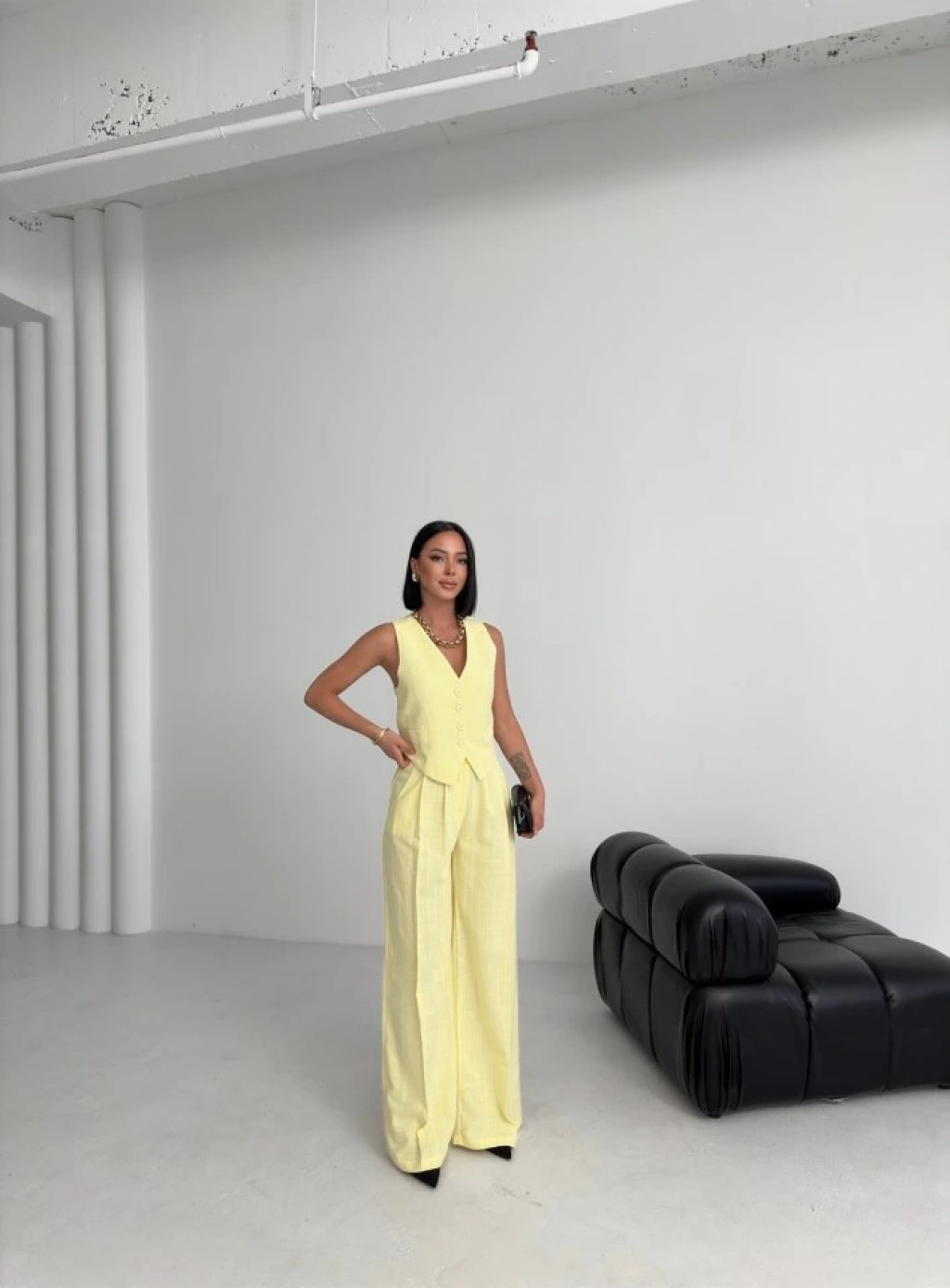 Keten Sirti Çapraz Geçi̇şli̇ Cepken Pantolon Takim