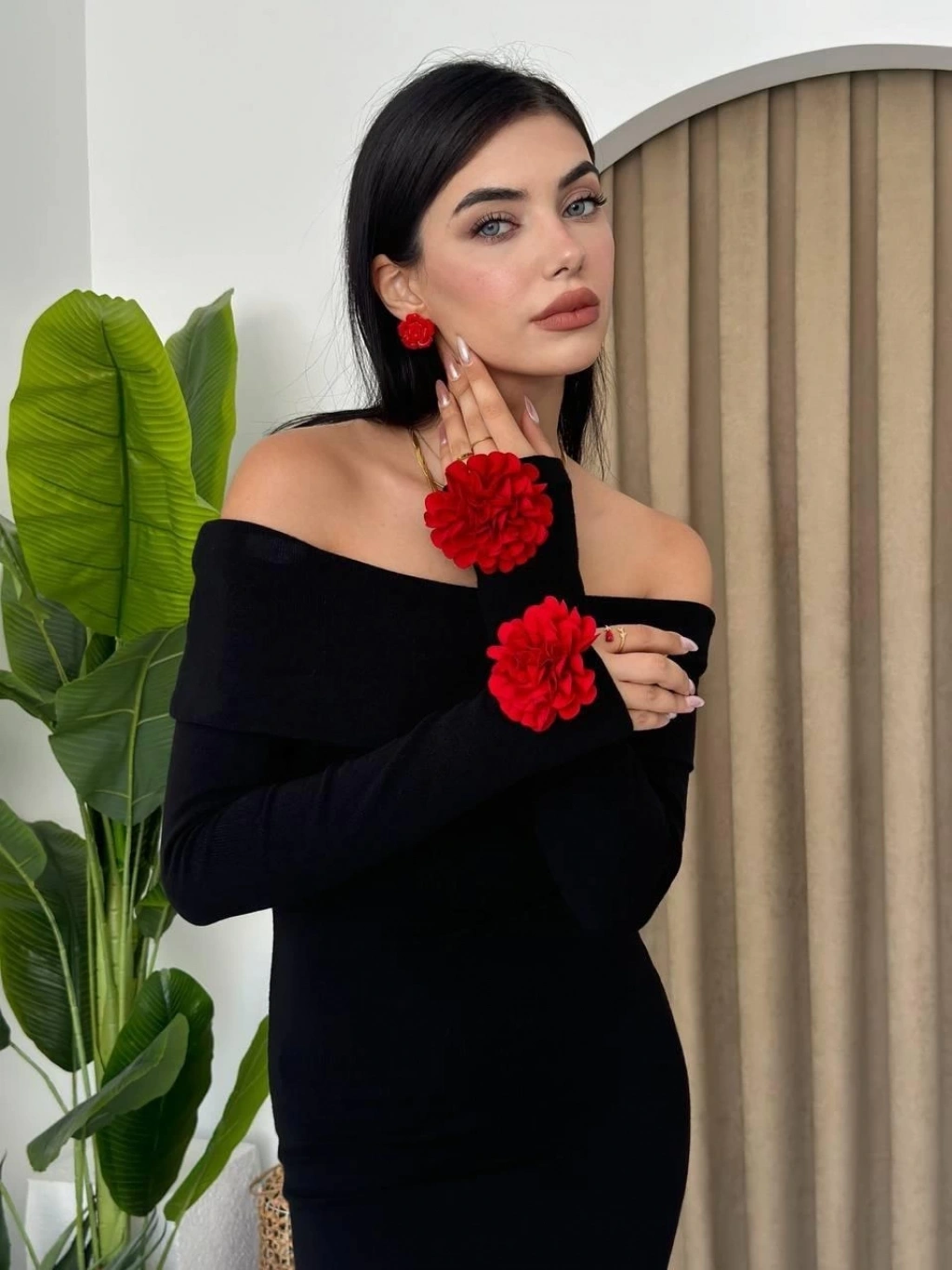 Modelin Ölçüleri: Boy:165, Kg:55, Göğüs:90, Bel:72, Kalça: 100