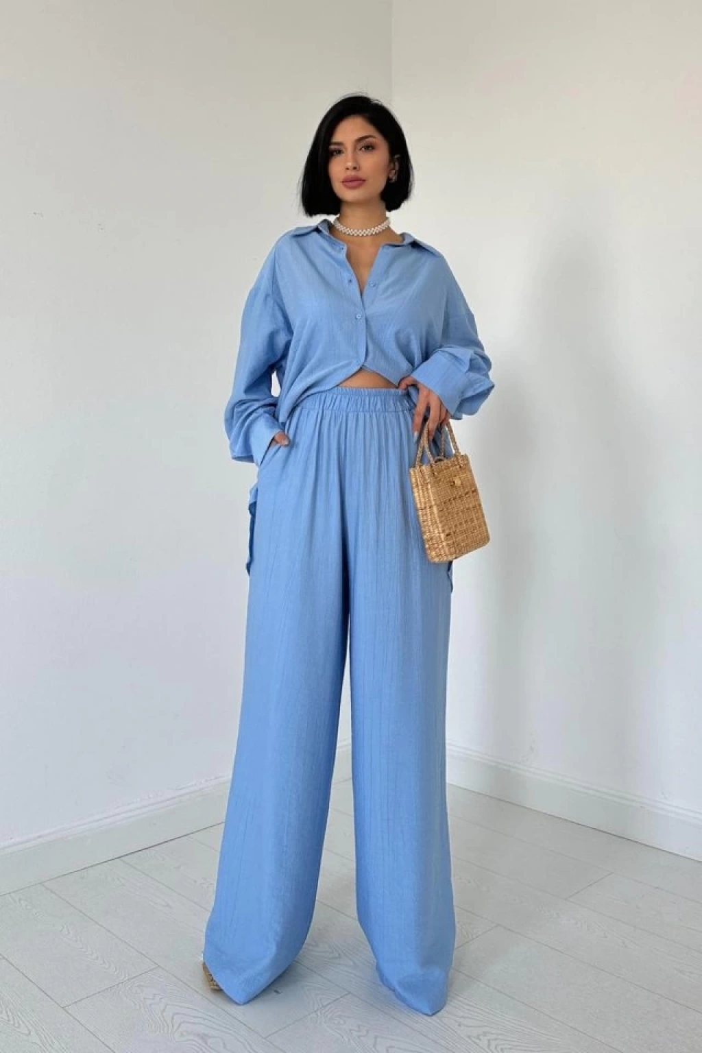 Mavi Alice Gömlek Ve Bol Kesim Pantolon Takım