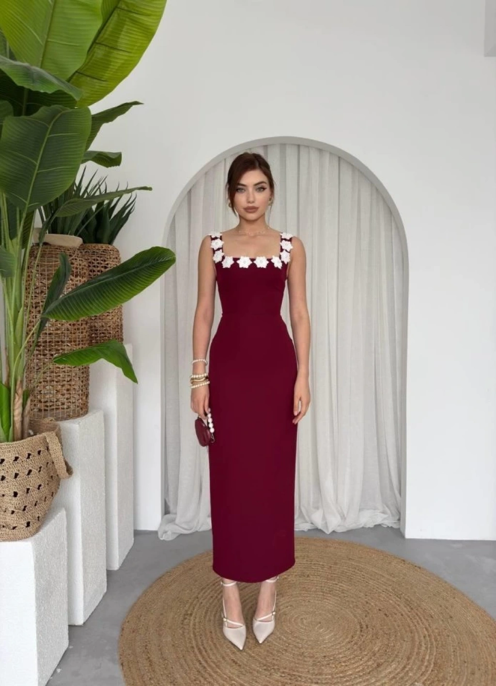 Mıng Çiçek Detaylı Elbise