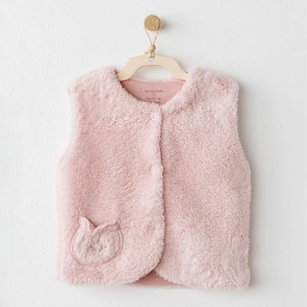 Bistyle Grow İn Love Çift Taraflı Bebe Yelek 18102 Pembe Ekru