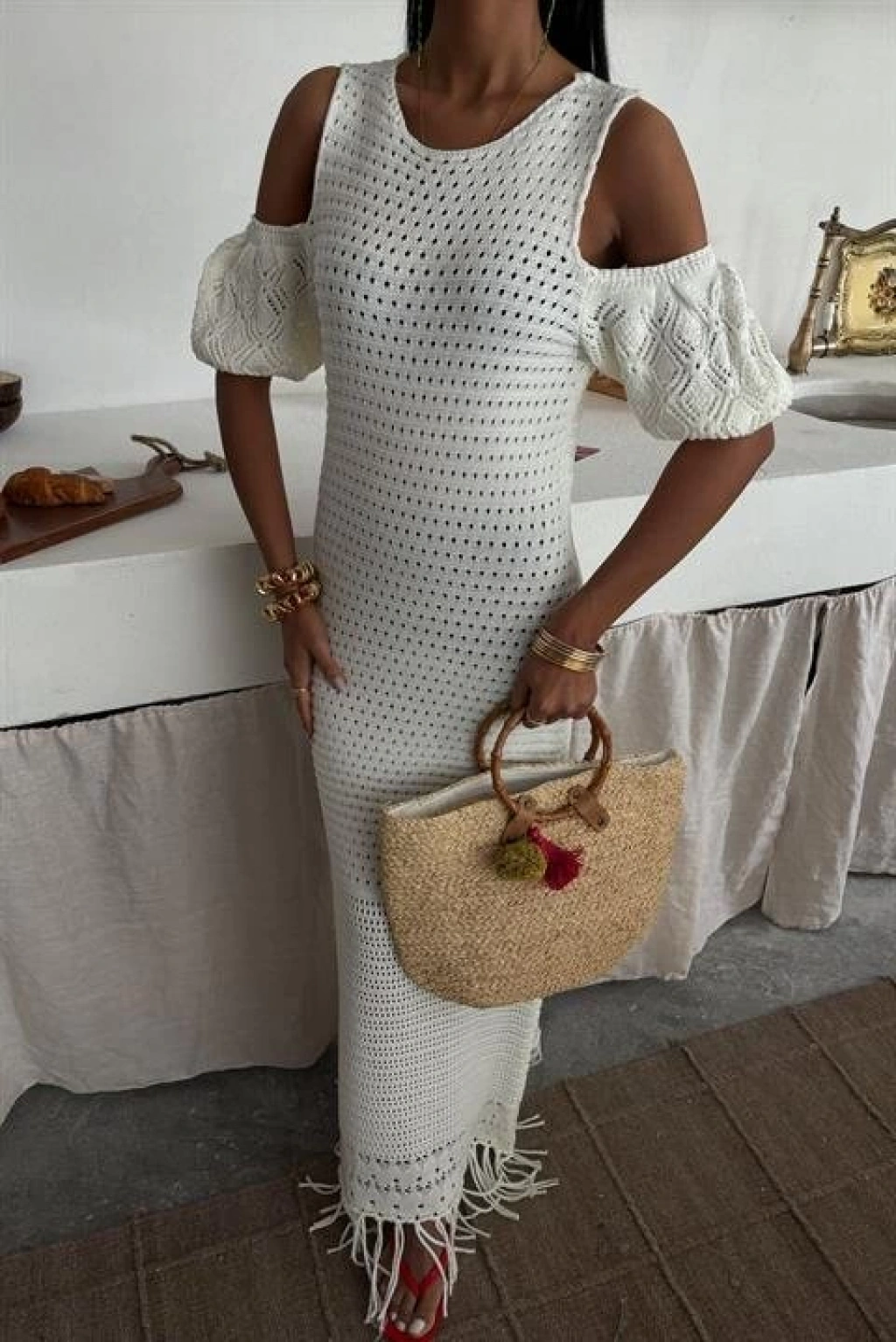 Omuz Detaylı Etek Ücü Püsküllü Triko Elbise 2862