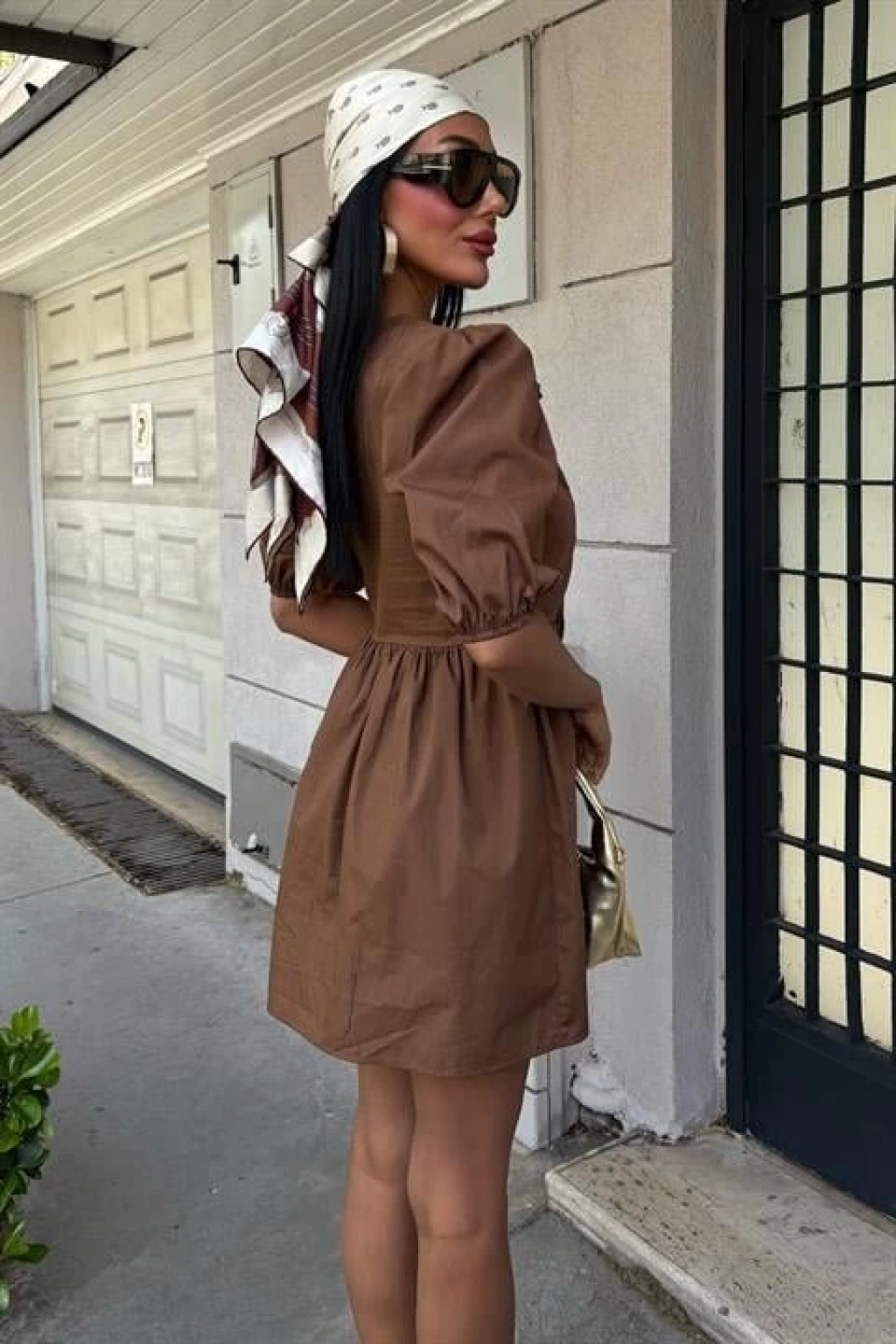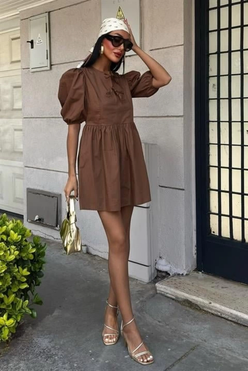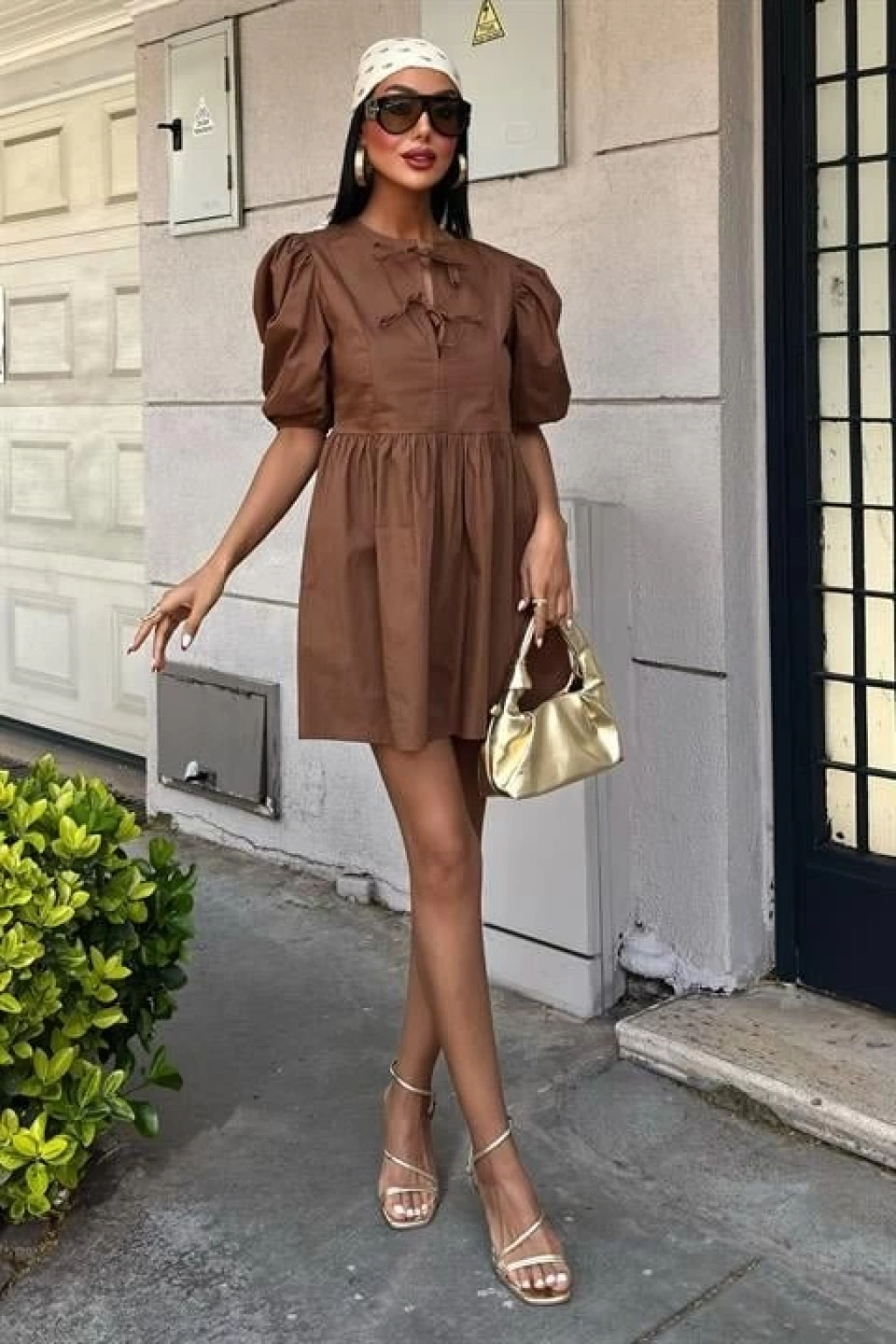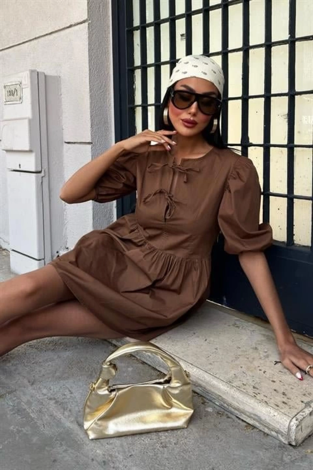Önü Fiyonk Bağlamalı Ve Balon Kollu Elbise 2893