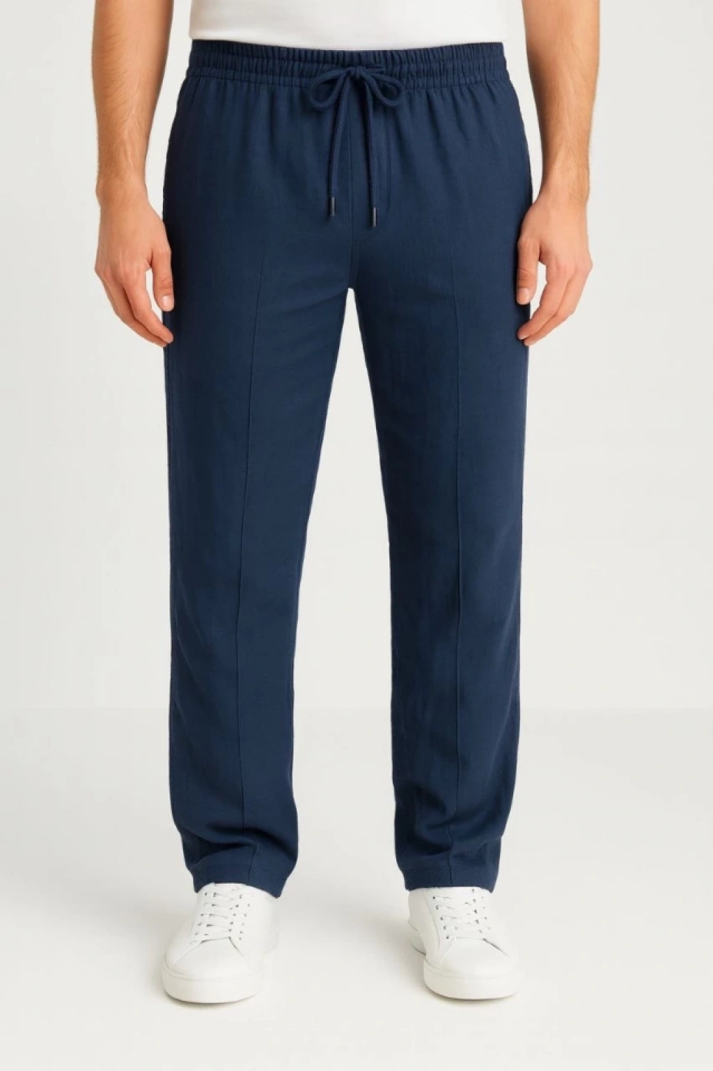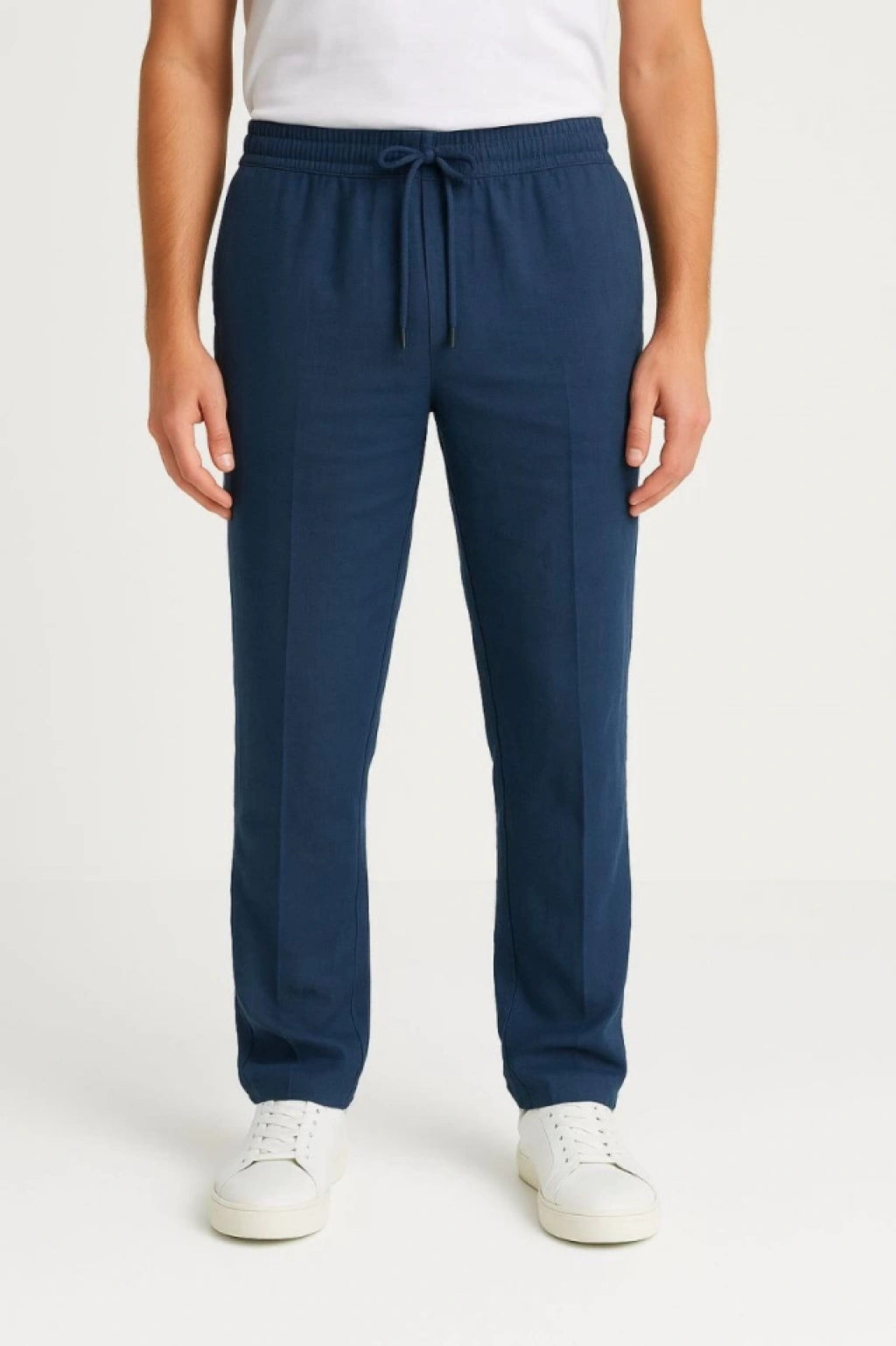 Erkek Keten Pantolon – Cepli, Beli Lastikli Ve Bağcıklı, Nefes Alan Rahat Kalıp, Yazlık Ve Baharlık Günlük Giyim, Şık & Konforlu Boru Paça Model - Lacivert