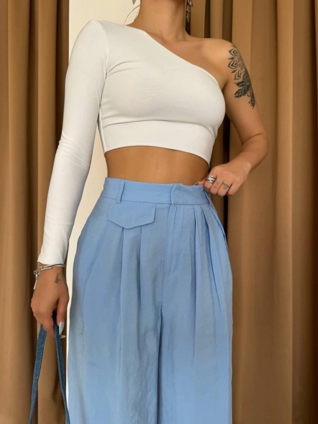 PİLE VE CEP KAPAK DEYALI SALAŞ PANTOLON - Mavi