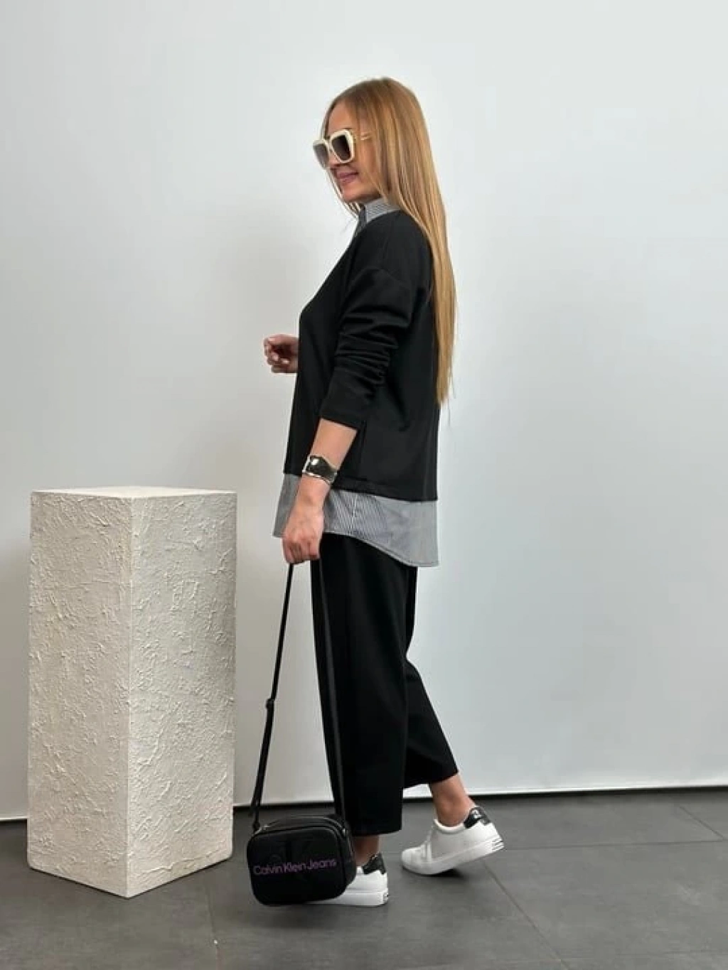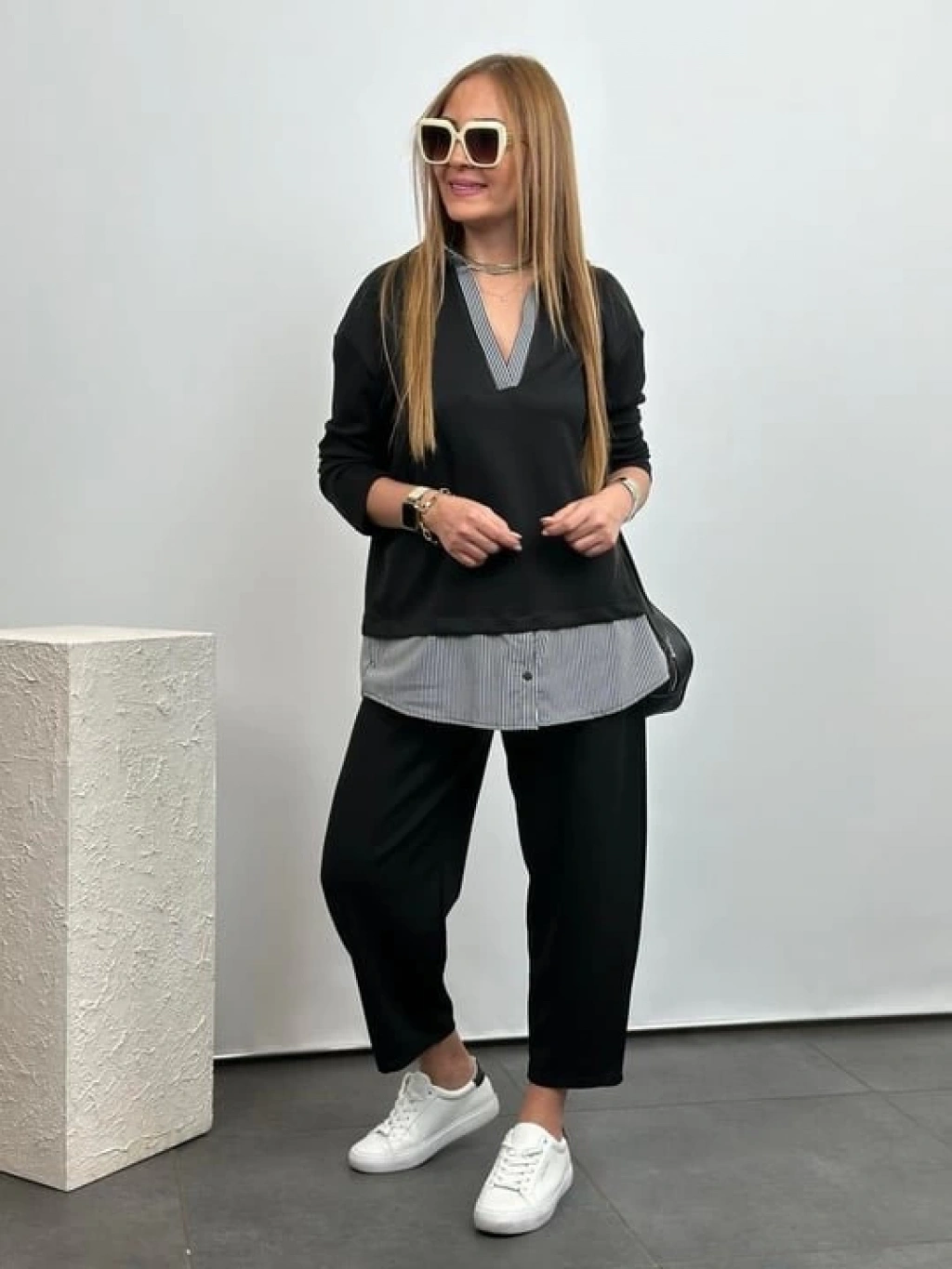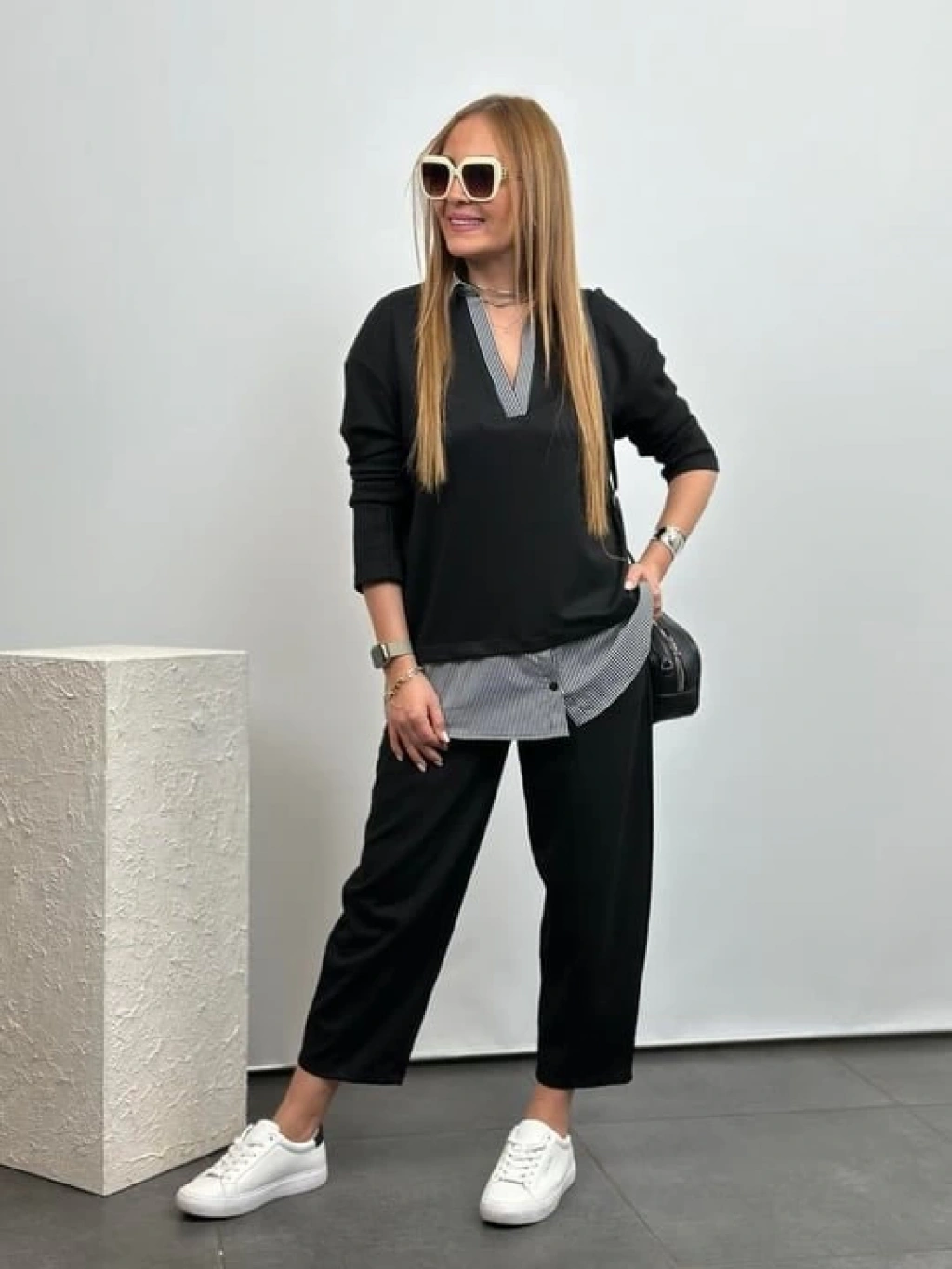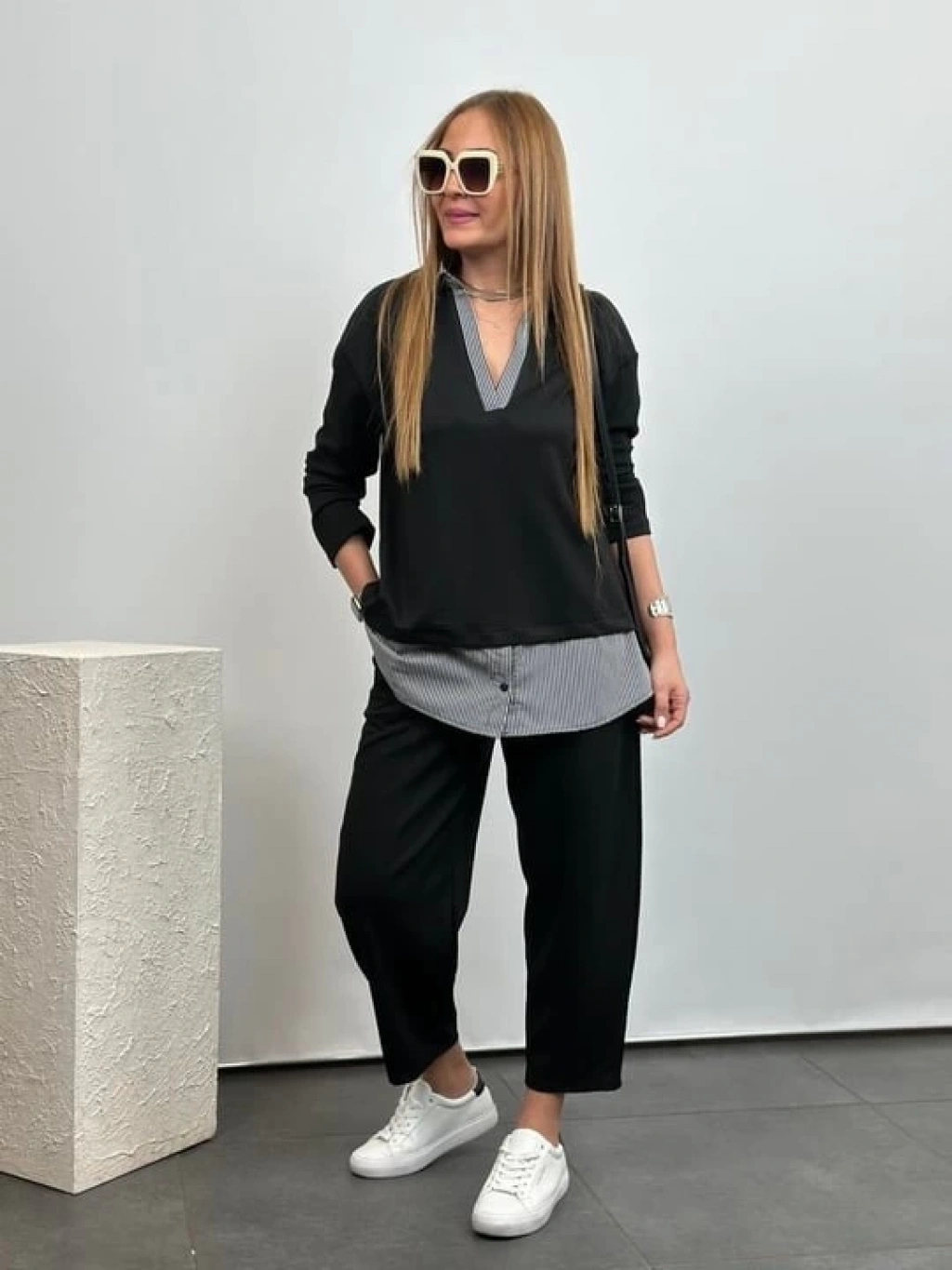 Polo Yaka Gömlek Detay Salaş Balon Pantolunlu ıkılı Takım